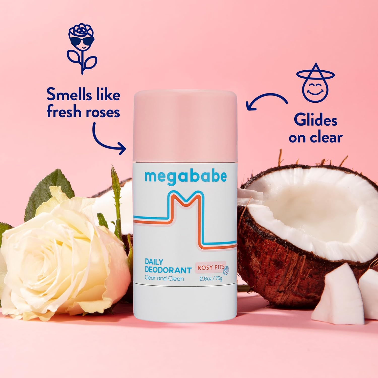 Megababe Daily Deodorant - Rosy Pits | 72 Hour Odor Protection | Aluminum-Free, Clear & Clean | 2.6 Oz