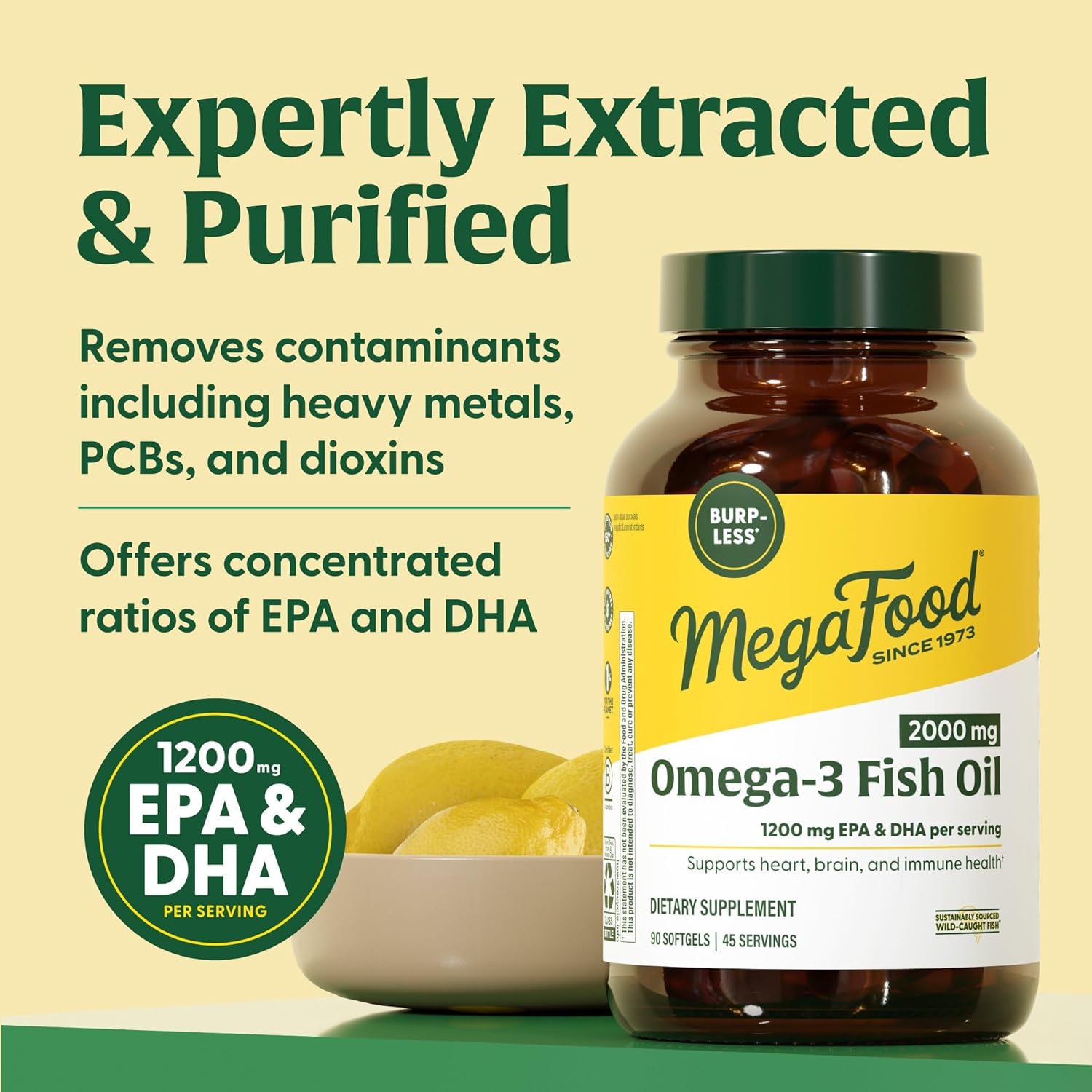 Megafood 2000Mg Fish Oil Omega 3 Supplements - Burp-Less & Lemon Oil Infused - Heart, Brain, Eye, Joint & Immune Support Supplement - 1200Mg Epa & Dha Per Serving - 90 Softgels, 45 Servings