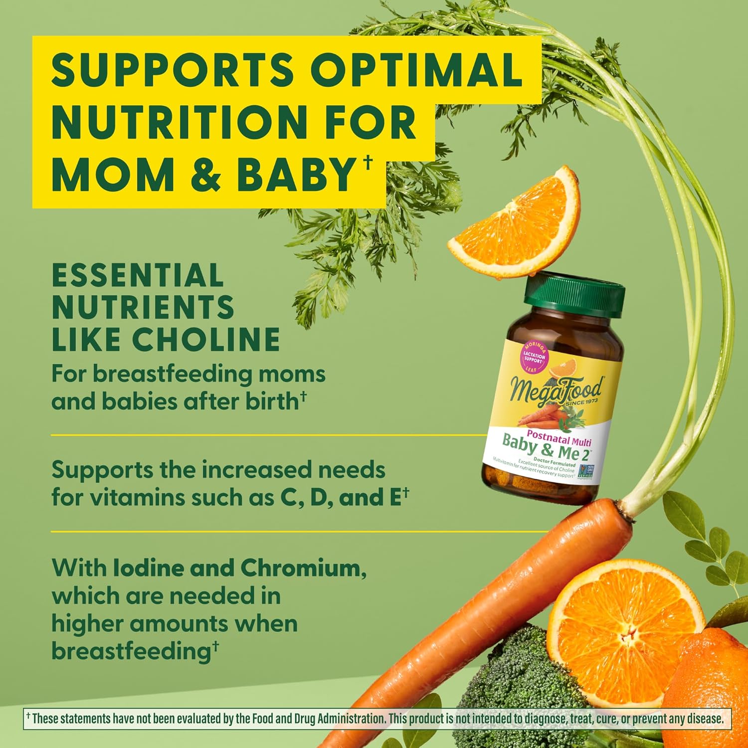 Megafood Baby & Me 2 Postnatal Vitamins For Breastfeeding Moms With Folate (Folic Acid Natural Form), Choline, Iodine, Vitamin D, Moringa Leaf And More - 60 Tabs (30 Servings)