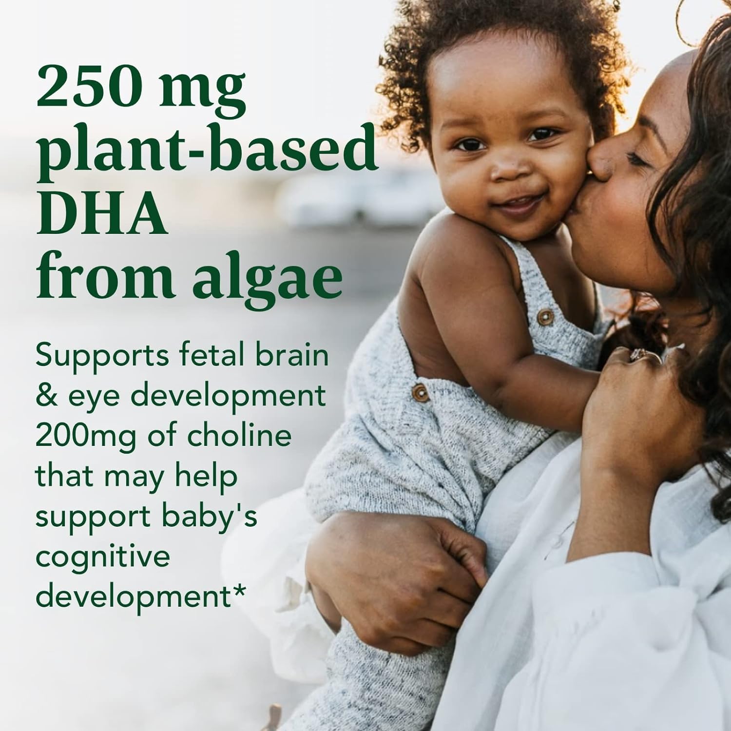 BULLET POINTS : 1 > Doctor-formulated with 250 mg of Plant-based DHA from algae, an essential fatty acid important for fetal brain and eye development, and 200 mg of Choline to help support baby's brain development