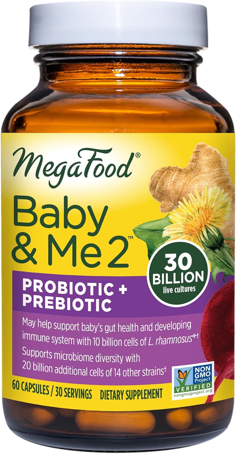 DESCRIPTION : MegaFood Baby & Me 2 Prenatal Probiotic + Prebiotic – Probiotics for Women & Developing Baby with 30 Billion CFU - Vegan and Non-GMO - 60 Capsules (30 Servings)