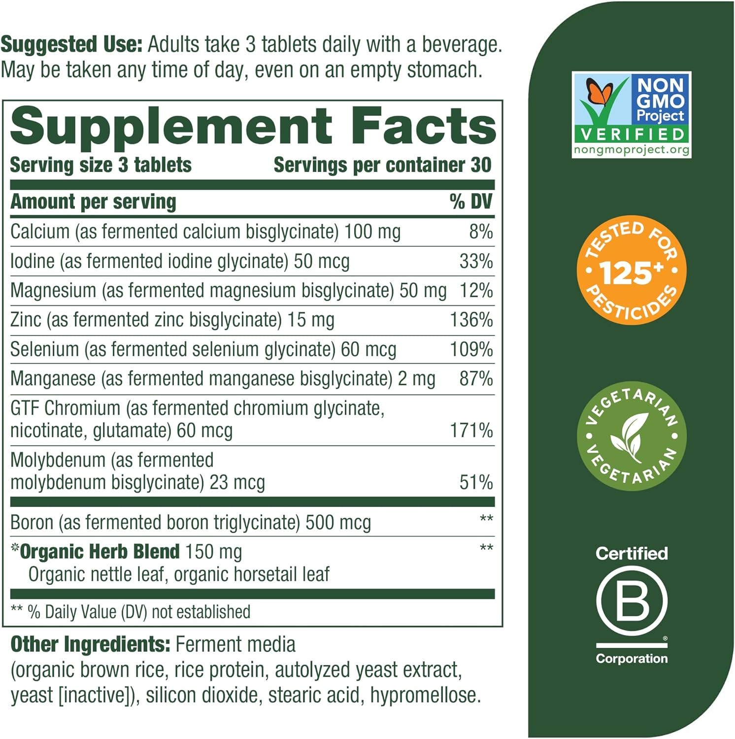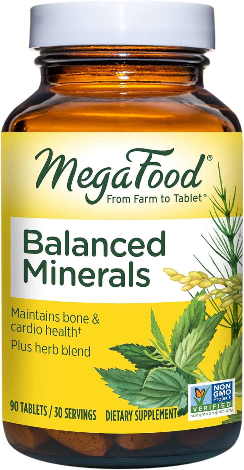 DESCRIPTION : MegaFood Balanced Minerals - Calcium, Fermented Magnesium Glycinate, Zinc, Selenium, GTF Chromium, Molybdenum, Nettle Leaf, Horsetail Leaf - Made Without 9 Food Allergens - 90 Tablets (30 Servings)