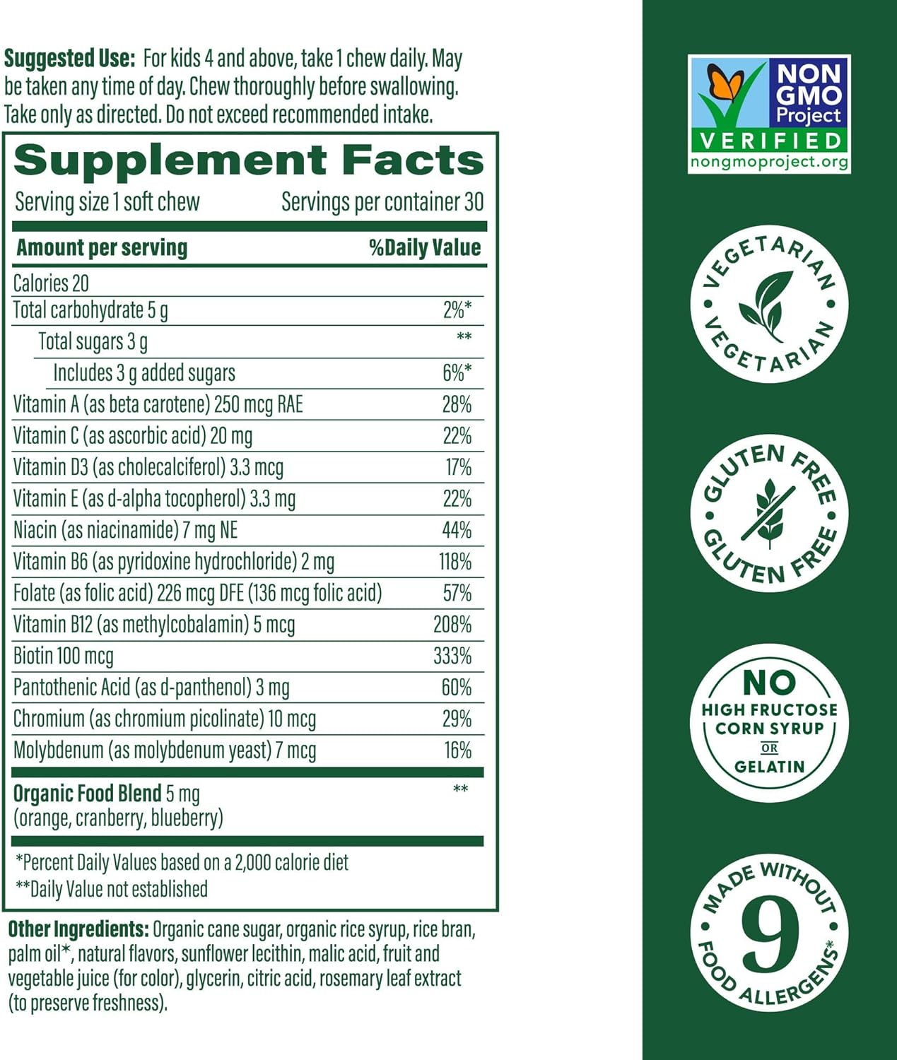 Delicious one daily multivitamin soft chew with essential vitamins and minerals to support the growth and development of kids age 4 and up