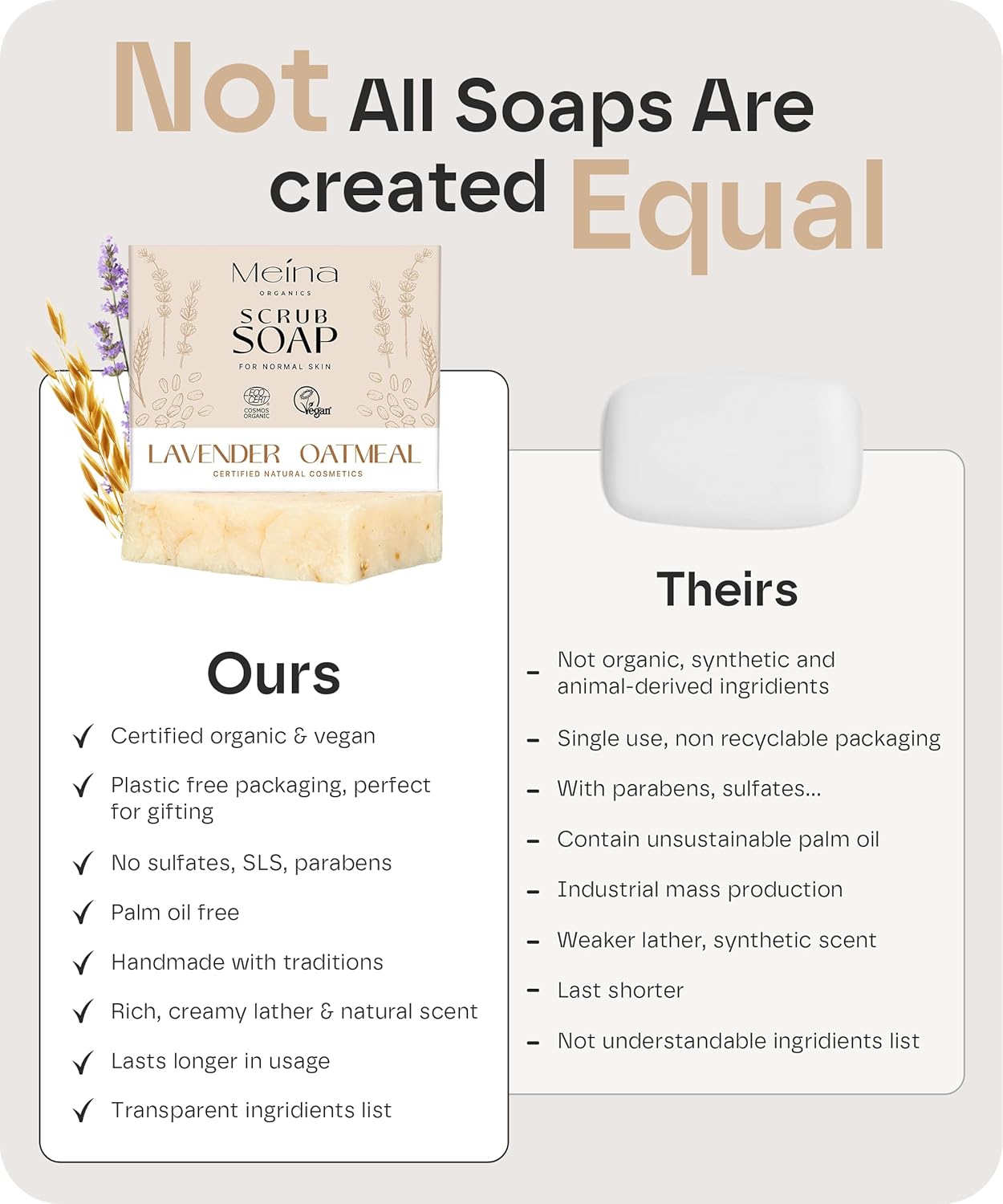 About this item 100% NATURAL INGREDIENTS - We use only 100% natural ingredients because of their excellent nourishing properties for your skin 100% HANDMADE SOAP - All our organic soaps are hand-crafted using the hot process method 100% VEGAN and 100% CRUELTY-FREE - For our natural soaps we use only high-quality plant-based ingredients. Not only do we protect animals this way, we also avoid contact with pesticides and hormones that are exposed to farm animals UNIQUE AROMA - The enchanting scent of this soap brings you to the vast lavender fields of the Provence. This feeling cannot be described with words LIGHT PEELING EFFECT - The poppy seeds, which have a gentle peeling effect, remove dead skin cells and make the skin soft and clean › See more product details,100% NATURAL INGREDIENTS - We use only 100% natural ingredients because of their excellent nourishing properties for your skin,100% HANDMADE SOAP - All our organic soaps are hand-crafted using the hot process method,100% VEGAN and 100% CRUELTY-FREE - For our natural soaps we use only high-quality plant-based ingredients. Not only do we protect animals this way, we also avoid contact with pesticides and hormones that are exposed to farm animals,UNIQUE AROMA - The enchanting scent of this soap brings you to the vast lavender fields of the Provence. This feeling cannot be described with words,LIGHT PEELING EFFECT - The poppy seeds, which have a gentle peeling effect, remove dead skin cells and make the skin soft and clean