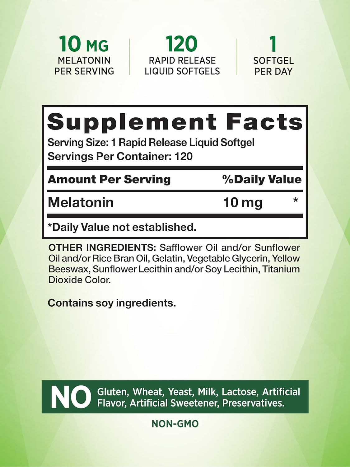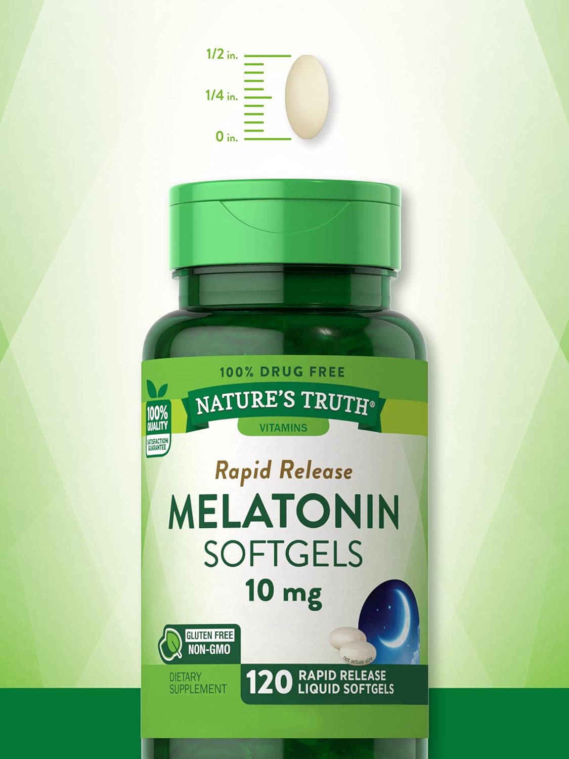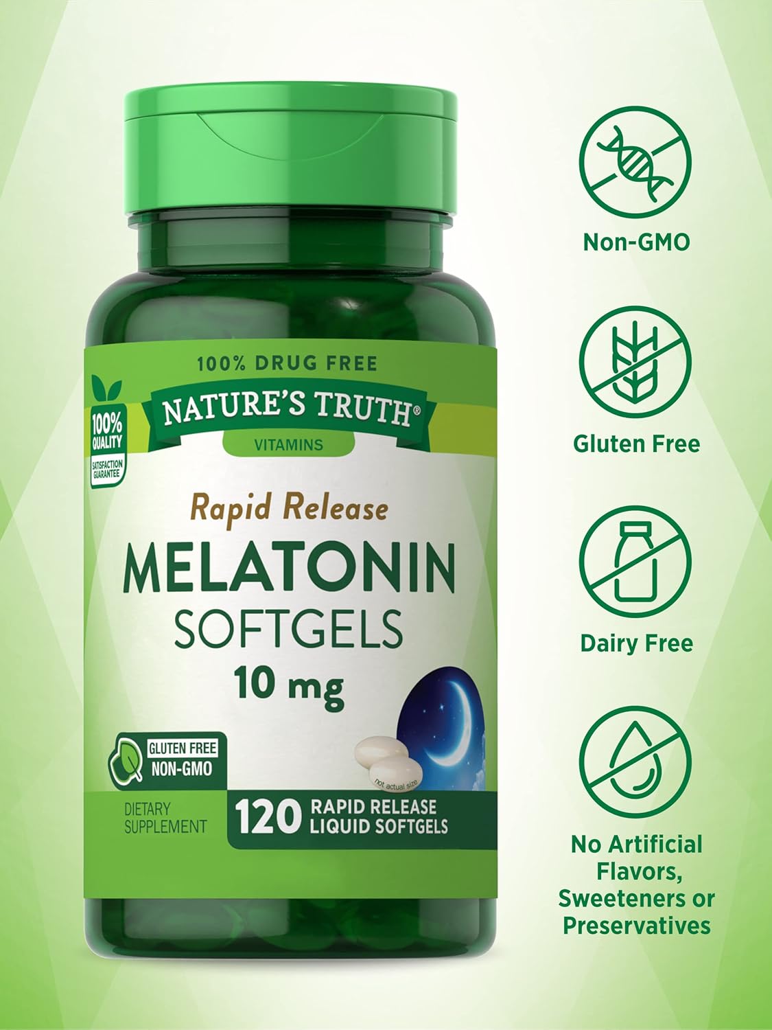 Melatonin 10Mg | Quick Release Softgel Capsules | 120 Count | Non-Gmo & Gluten Free Supplement | By Nature'S Truth