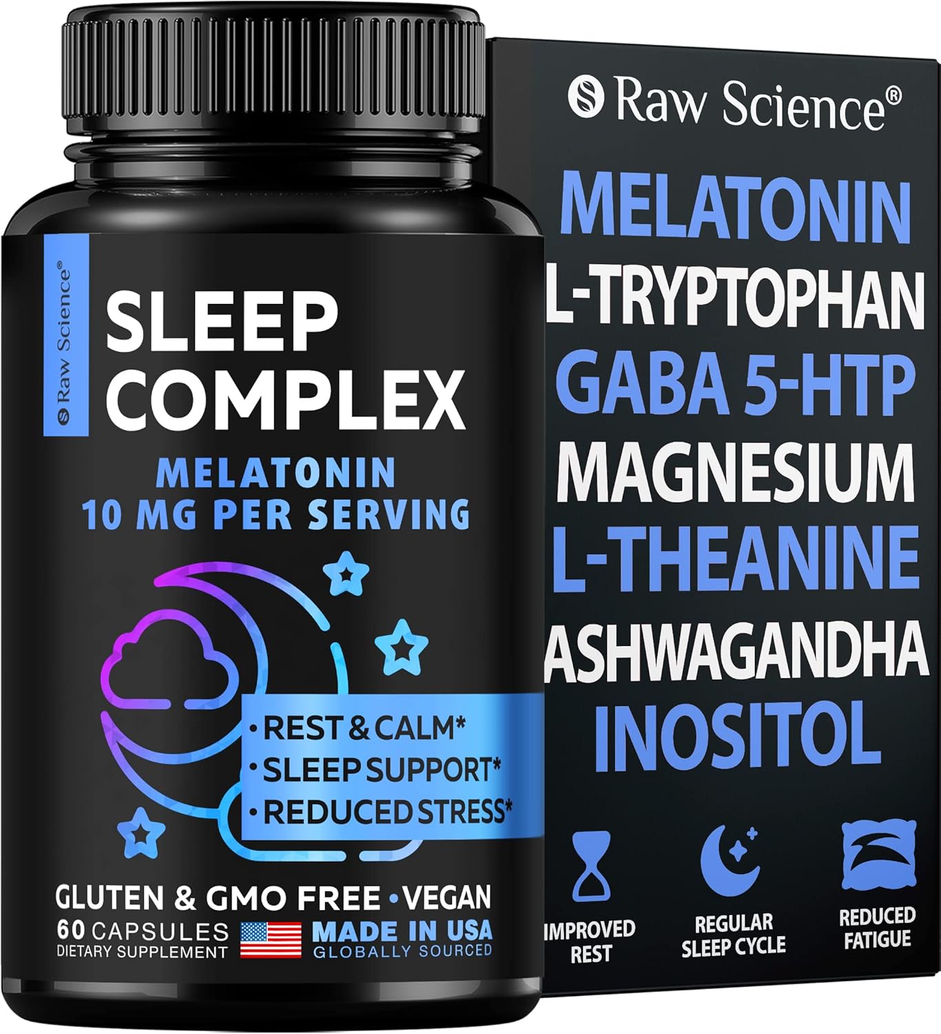 Melatonin 10Mg Sleep Supplement - L Theanine, Gaba Calm, L-Tryptophan - Deep Sleep Supplements For Adults With Ashwagandha, Passion Flower, Lemon Balm, Chamomile, Magnesium Sleep Support - 60 Capsules