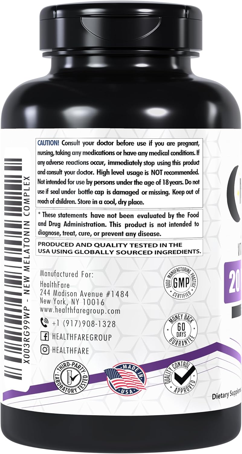 About this item POTENT FORMULA: Each capsule provides 20mg of melatonin, enhanced with L-theanine, valerian root, and vitamin B6 for better sleep support. NATURALLY SOURCED: Crafted with natural ingredients to promote relaxation and restfulness. VEGETARIAN and NON-GMO: Free from GMOs, gluten, and artificial additives to meet various dietary needs. EASY-TO-TAKE CAPSULES: Convenient capsules designed for easy daily use. QUALITY GUARANTEED: Manufactured in high-quality facilities in the USA to ensure a safe and reliable product. See more product details,POTENT FORMULA: Each capsule provides 20mg of melatonin, enhanced with L-theanine, valerian root, and vitamin B6 for better sleep support,NATURALLY SOURCED: Crafted with natural ingredients to promote relaxation and restfulness,VEGETARIAN and NON-GMO: Free from GMOs, gluten, and artificial additives to meet various dietary needs,EASY-TO-TAKE CAPSULES: Convenient capsules designed for easy daily use,QUALITY GUARANTEED: Manufactured in high-quality facilities in the USA to ensure a safe and reliable product