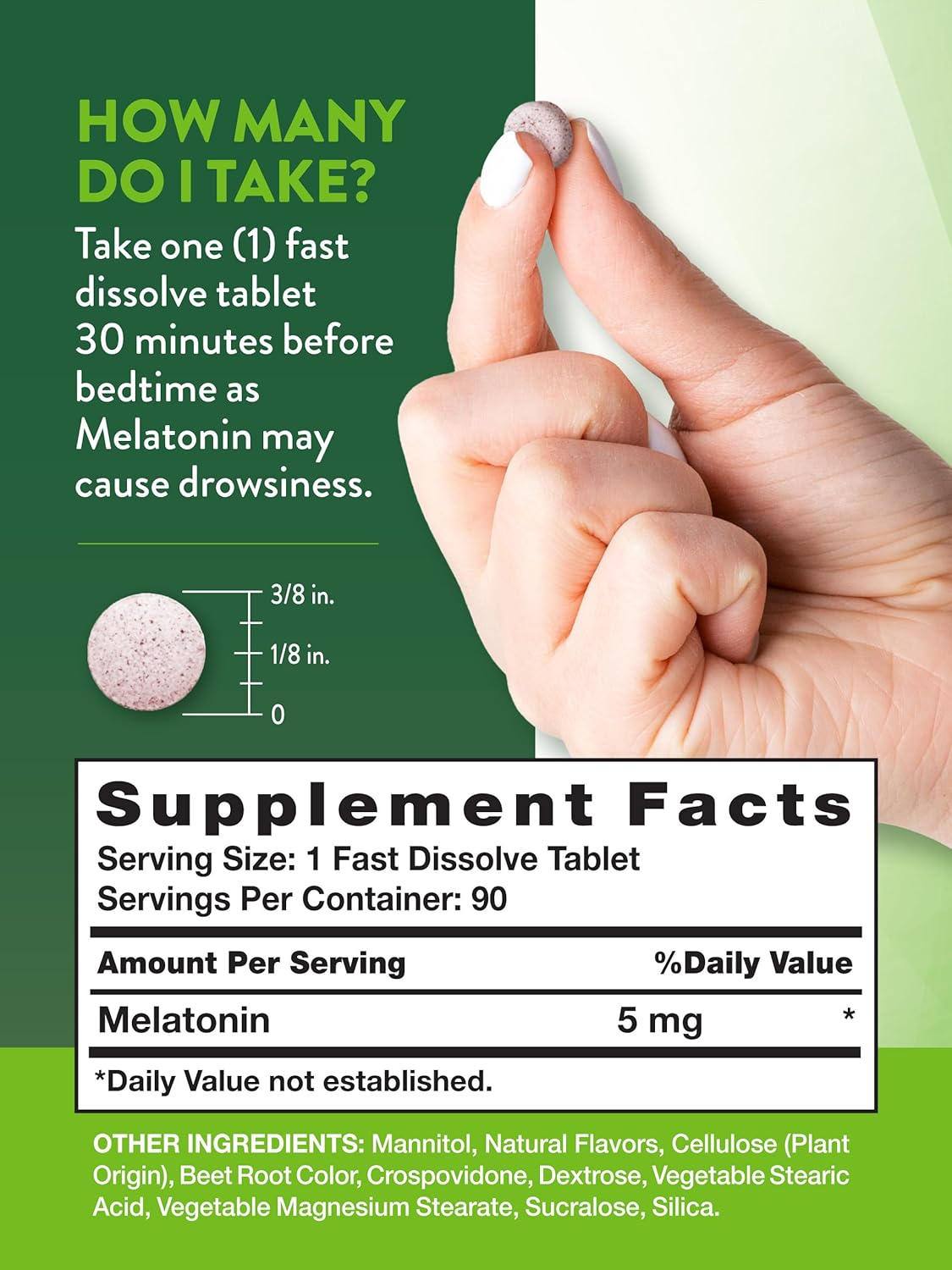 Melatonin: Each Single Tablet Serving Delivers 5 Mg Of Quality Melatonin Before Bedtime