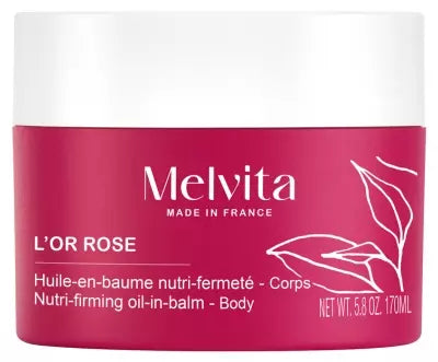 Melvita L'Or Rose Firming Oil-In-Bal Organic 170Ml Is A Body Firmness Care Certified Organic Enriched In Pink Berries And Pink Coralline. It Is Ideal For The Dry Skins And For People Looking For Firmness And Nutrition. Endowed With Powerful Slimming Active Ingredients, It Contributes To Firming And Nourishing The Skin Gently, Helps Reduce Cellulite And Prevents The Natural Storage Of Fat: Pink Coralline: Active Recognized For Its Firming Properties, Naturally Helps To Limit Fat Storage. Pink Berries: Recognised For Their Powerful Firming Properties, They Help Eliminate Fat Storage And Facilitate Drainage. They Are 8 Times More Effective Than Caffeine. Its Oil-In-Balm Texture Is Rich And Non-Sticky, It Turns Into Creamy Milk Upon Application. Its Double Single Use As A Daily Care Or As A Weekly Wrap Mask, Visibly Reduces The Orange Peel Appearance And Helps To Smooth And Firm The Skin. The Skin Is Nourished, Firmer And Smoother. 99% Of Total Ingredients Is Of Natural Origin. 35% Of Total Ingredients Is From Organic Farming. Vegan. Cosmos Organic Certified By Ecocert Greenlife According To Cosmos Standard. Made In France