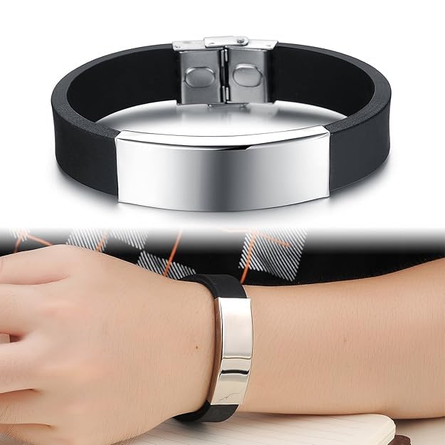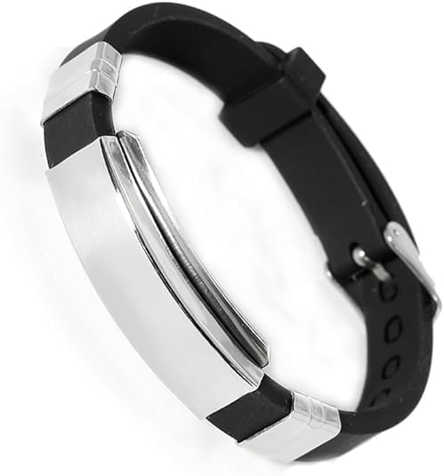 Men'S Black Silicone Stainless Steel Bracelet - Adjustable Designer Wristband With Ion Technology For Style And Health Care