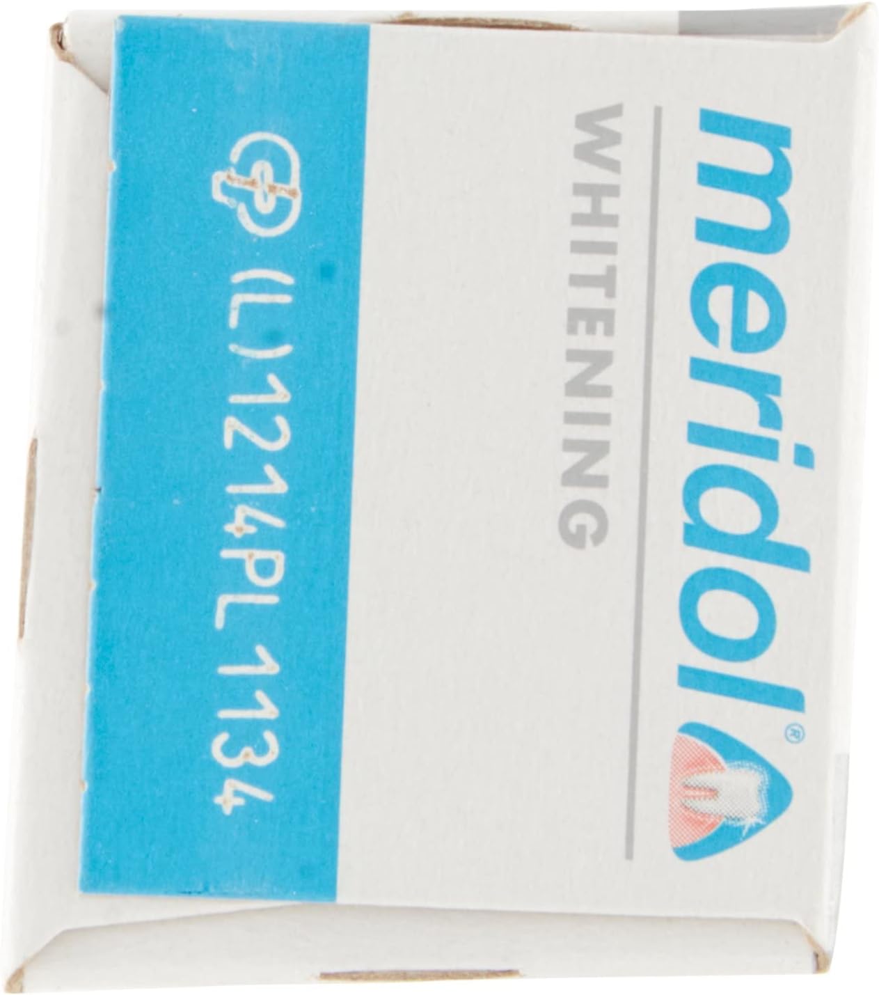 Product Description Meridol Whitening toothpaste fights bacteria, the main cause of gum irritation - not just its symptoms. The mild formula is effective and non-aggressive and keeps teeth and gums healthy. The natural whiteness of the teeth is restored and pigmentation removed. Helps gum irritation, gum bleeding, gum recession, paradontal problems, plaque and tooth decay, tooth pigmentation. Ingredients Aqua, Hydrated Silica, Glycerin, Sorbitol, Hydroxyethylcellulose, Aroma, Cocamidopropyl Betaine, Polyglyceryl-4 Caprate, Zinc Lactate, Olafluor, Sodium Fluoride, Sodium Saccharin, Limonene, CI 74160. P.when('A').execute(function(A) { A.on('a:expander:toggle_description:toggle:collapse', function(data) { window.scroll(0, data.expander.$expander[0].offsetTop-100); }); }); Directions Apply a pea-sized amount of Méridol Gums Protection Whiteness Toothpaste to a soft-bristled toothbrush. Brush teeth gently in circular motions for 2 minutes, paying special attention to combat gum irritation. Rinse thoroughly with water. Safety Warning Keep out of reach of children. See more,Whitening toothpaste,combat the causes of gum irritation,protection and care of the gums