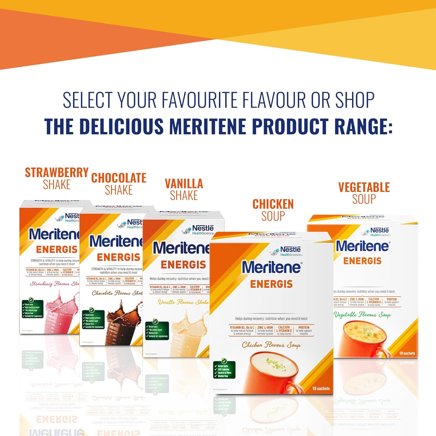 Meritene Energis Chicken Meal Replacement | 50G Powder Sachets, Pack Of 10 | Nutritional Support Mix With Proteins And Minerals | With Vitamin D, B & K