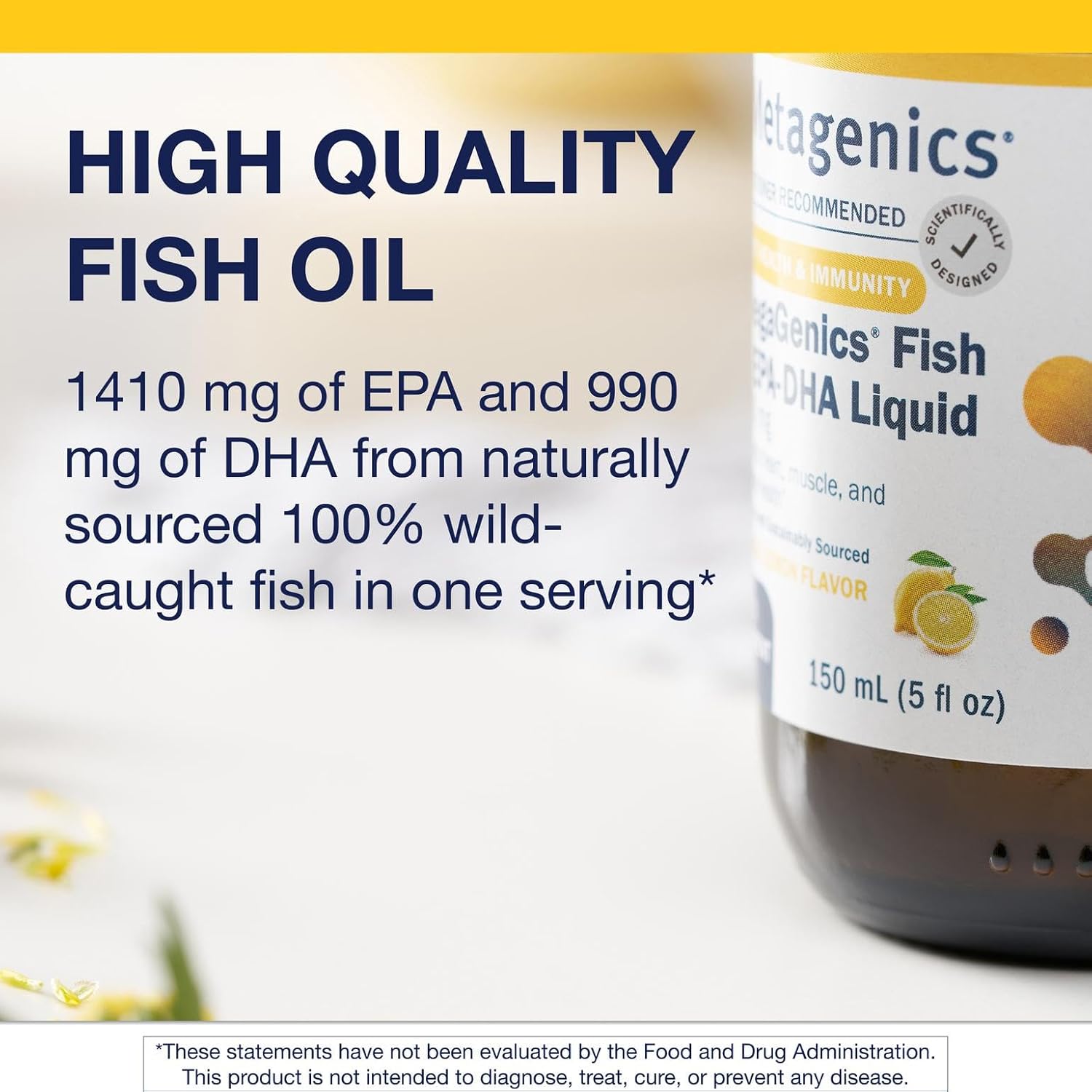 About this item As the #1 Doctor Recommended Professional Supplement Brand, Metagenics delivers clinically proven, precision-crafted formulas to support your health at its coreābecause true wellness starts with integrity, balance, and expertise Fish Oil Benefits: Metagenics OmegaGenics Fish Oil EPA DHA 2400 mg Liquid has 5-in-1 benefitsāsupports heart, brain, immune, eye, and musculoskeletal health* Sustainably Sourced Fish Oil: Omega-3 fish oil sustainably derived from cold-water fish like anchovy, sardine, and mackerel Superior Quality & Purity: Our fish oil supplements are rigorously tested for several hundred contaminants and have guaranteed purity. Easy-to-Take Fish Oil: Enjoy our fish oil in a natural lemon flavor and easy-to-take triglyceride form  See more product details,As the #1 Doctor Recommended Professional Supplement Brand, Metagenics delivers clinically proven, precision-crafted formulas to support your health at its coreābecause true wellness starts with integrity, balance, and expertise,Fish Oil Benefits: Metagenics OmegaGenics Fish Oil EPA DHA 2400 mg Liquid has 5-in-1 benefitsāsupports heart, brain, immune, eye, and musculoskeletal health,Sustainably Sourced Fish Oil: Omega-3 fish oil sustainably derived from cold-water fish like anchovy, sardine, and mackerel,Superior Quality & Purity: Our fish oil supplements are rigorously tested for several hundred contaminants and have guaranteed purity,Easy-to-Take Fish Oil: Enjoy our fish oil in a natural lemon flavor and easy-to-take triglyceride form
