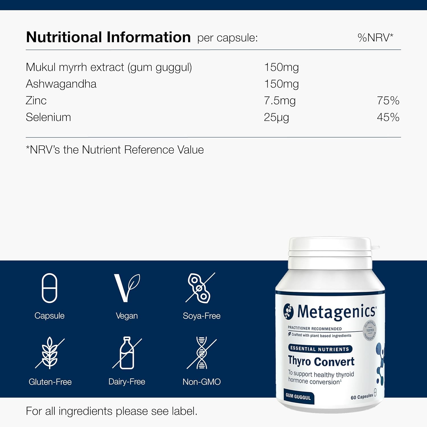 Metagenics Thyro Convert With Gum Guggul Resin - With Ashwagandha, Selenium & Zinc For Healthy Thyroid Hormone Conversion - 60 Capsules