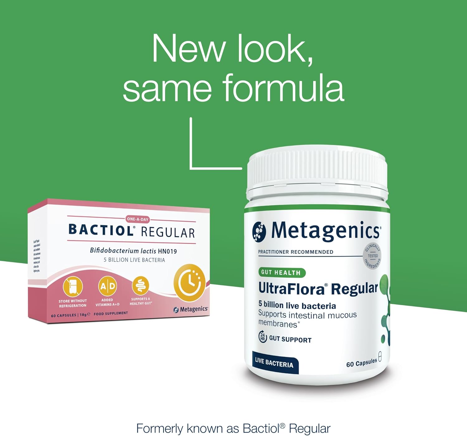 Metagenics Ultraflora Regular - High-Strength Bifidobacterium Lactis Hn019 Probiotic - Supports Gut Health, 60 Capsules