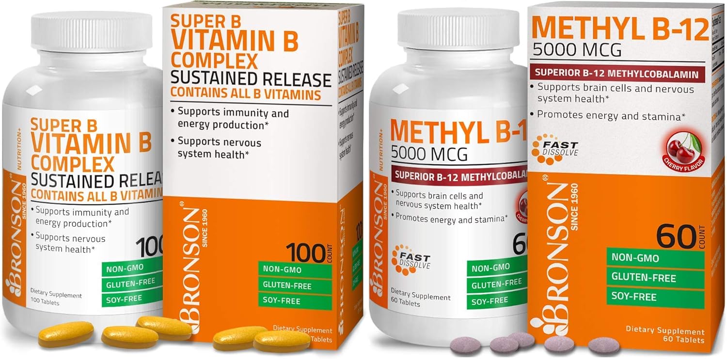 Methyl B12 5000 Mcg Vitamin B12 Methylcobalamin Lozenges + Super B Vitamin B Complex Sustained Slow Release