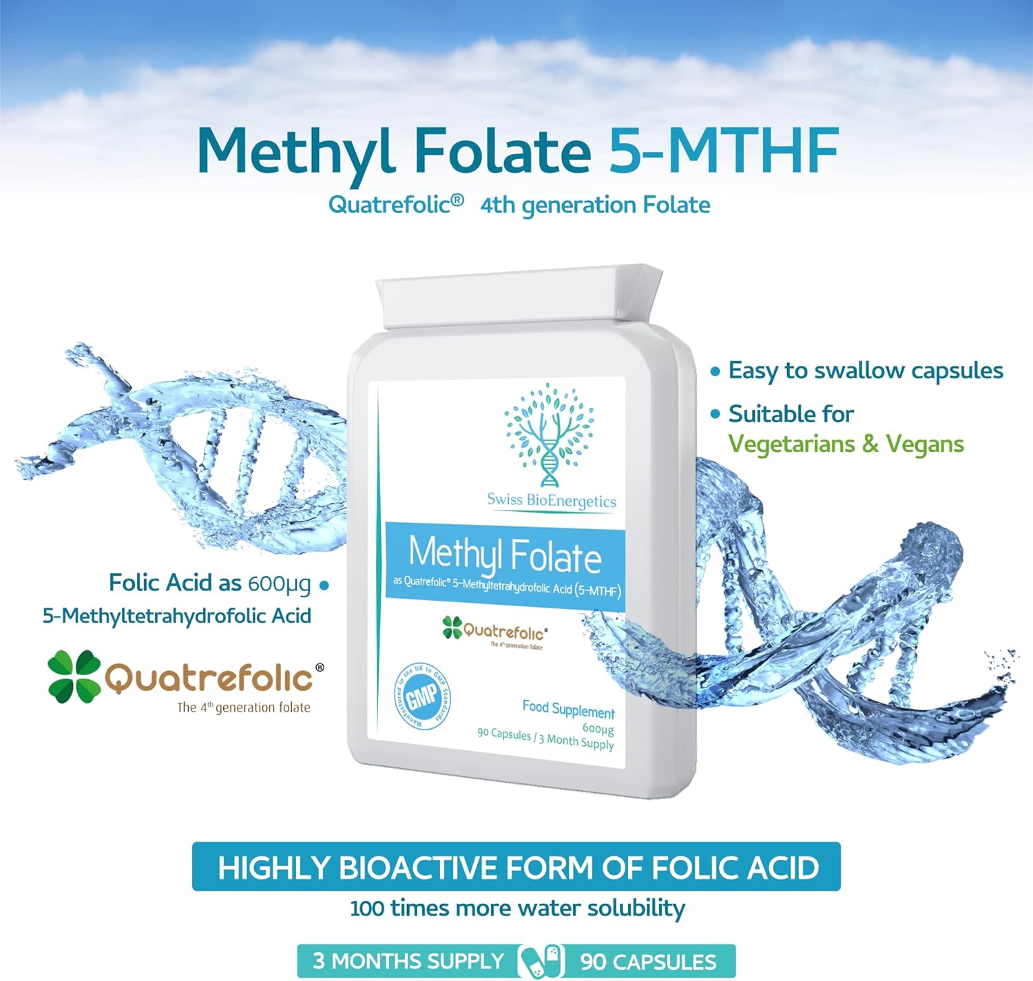 DESCRIPTION : Methyl Folate 600µg - 90 Capsules as Quatrefolic 5-MTHF Supplement 6S-5-methyltetrahydrofolate – The 4th Generation of Folate a Highly biologically Active Form of Folic Acid/Vitamin B9 - UK Made