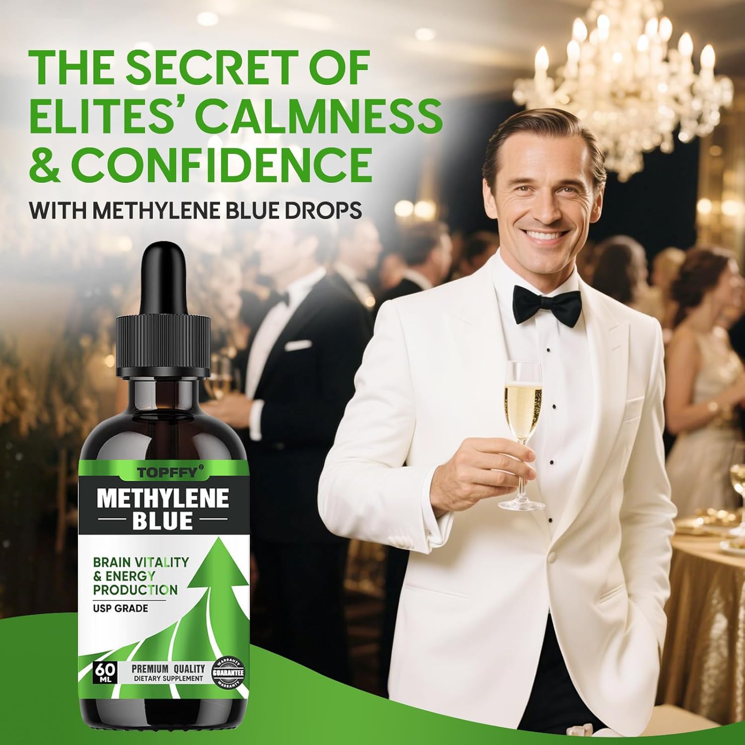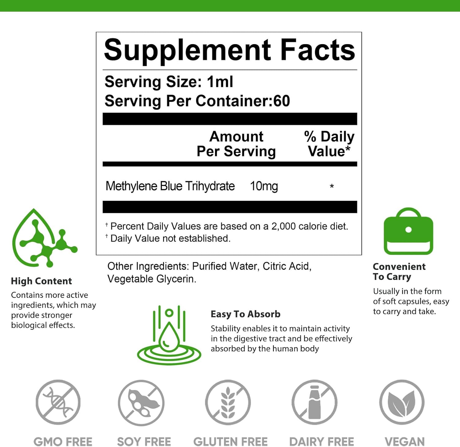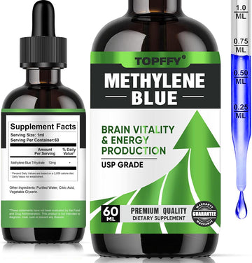 Methylene Blue Pharmaceutical Grade, Methylene Blue For Humans, Ultra Strength Third-Party Tested Brain Health, Non-Gmo, 60Ml