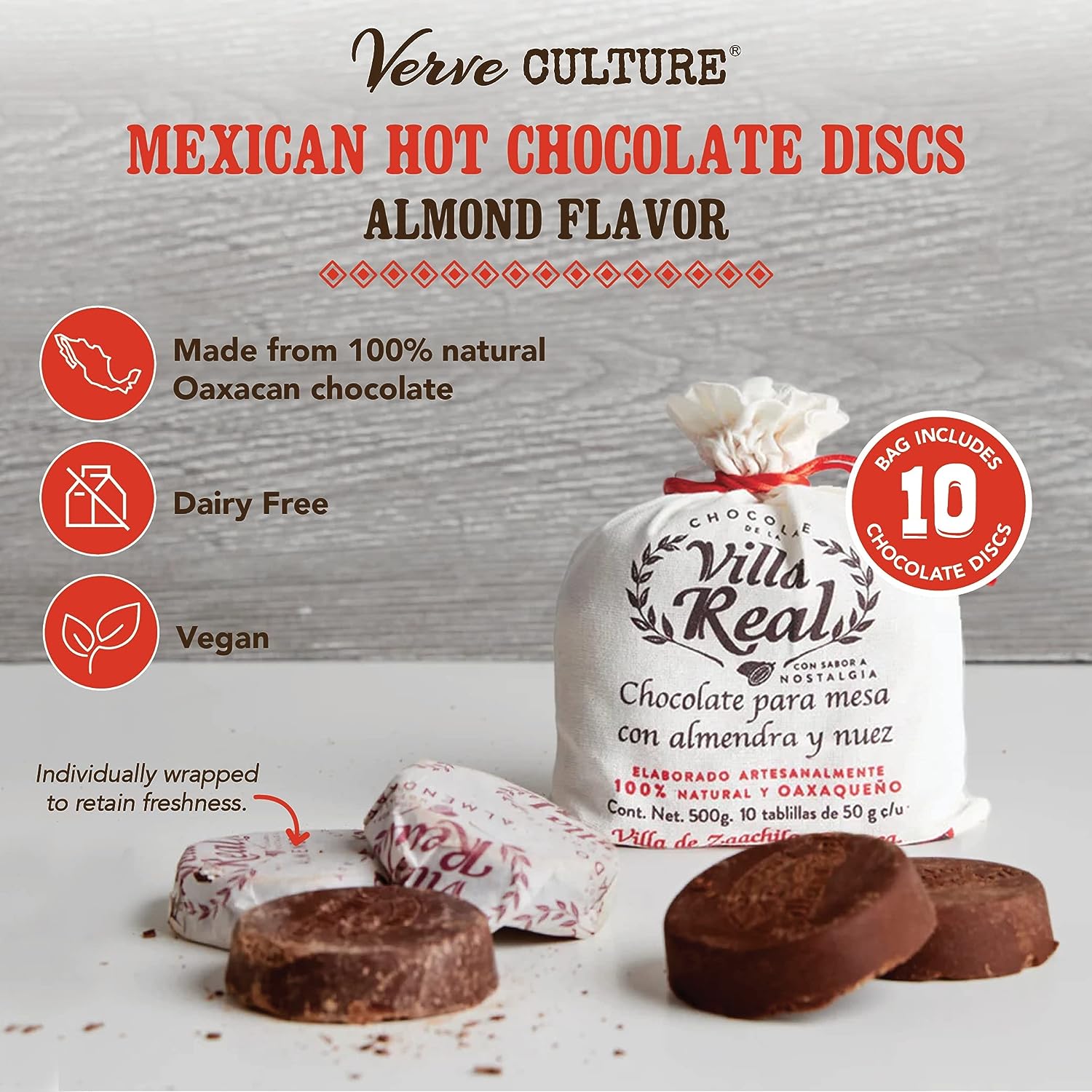 Mexican Hot Chocolate by Verve CULTURE, Dairy Free Vegan Hot Cocoa, Gourmet Spicy Hot Chocolate Discs, Almond and Walnut Hot Chocolate, 500g Bag, 10 Discs