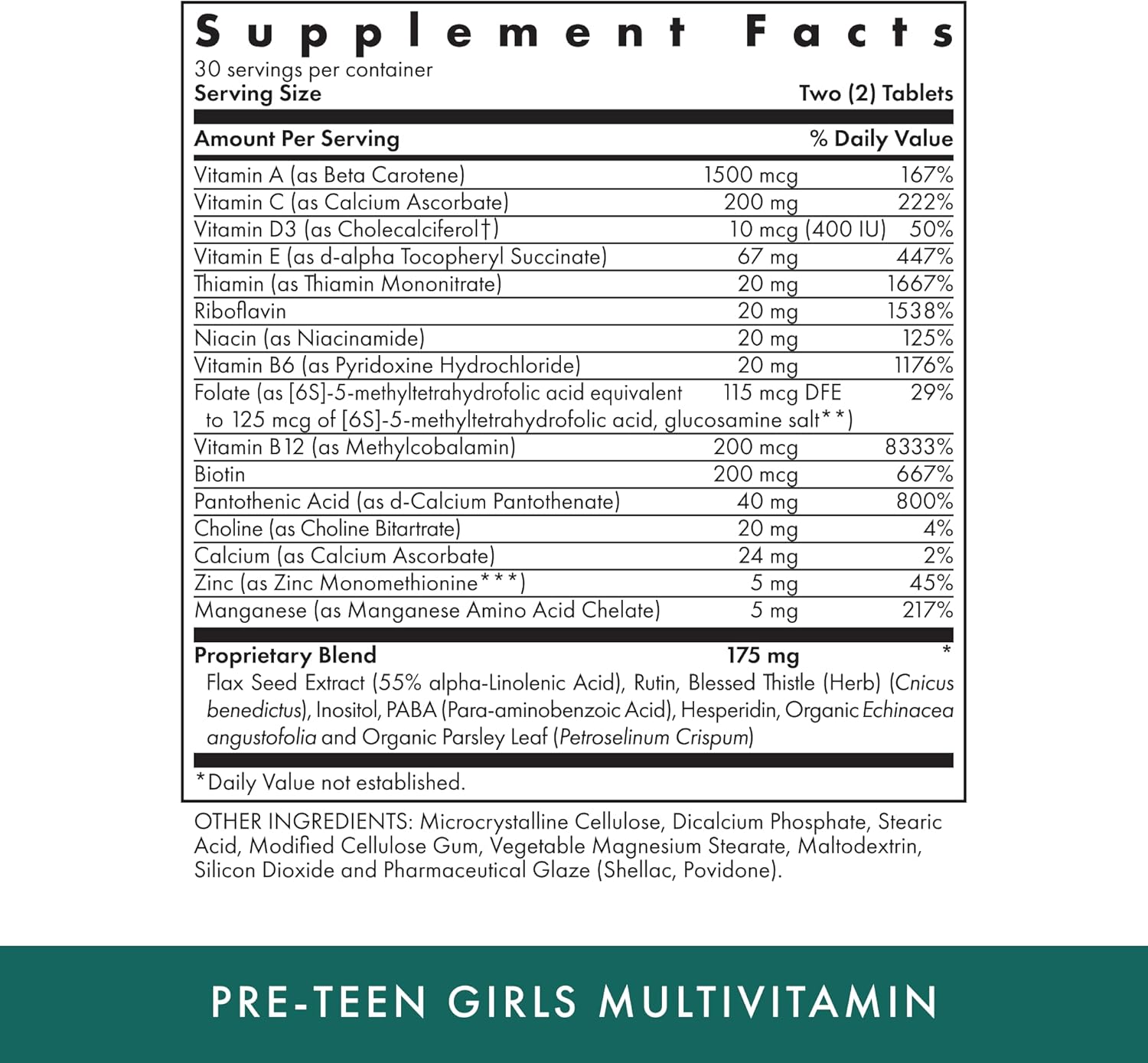 Michael'S Health Naturopathic Programs Pre-Teen Girls - 60 Vegetarian Tablets - Daily Multivitamin For Healthy Growth & Development - Kosher - 30 Servings