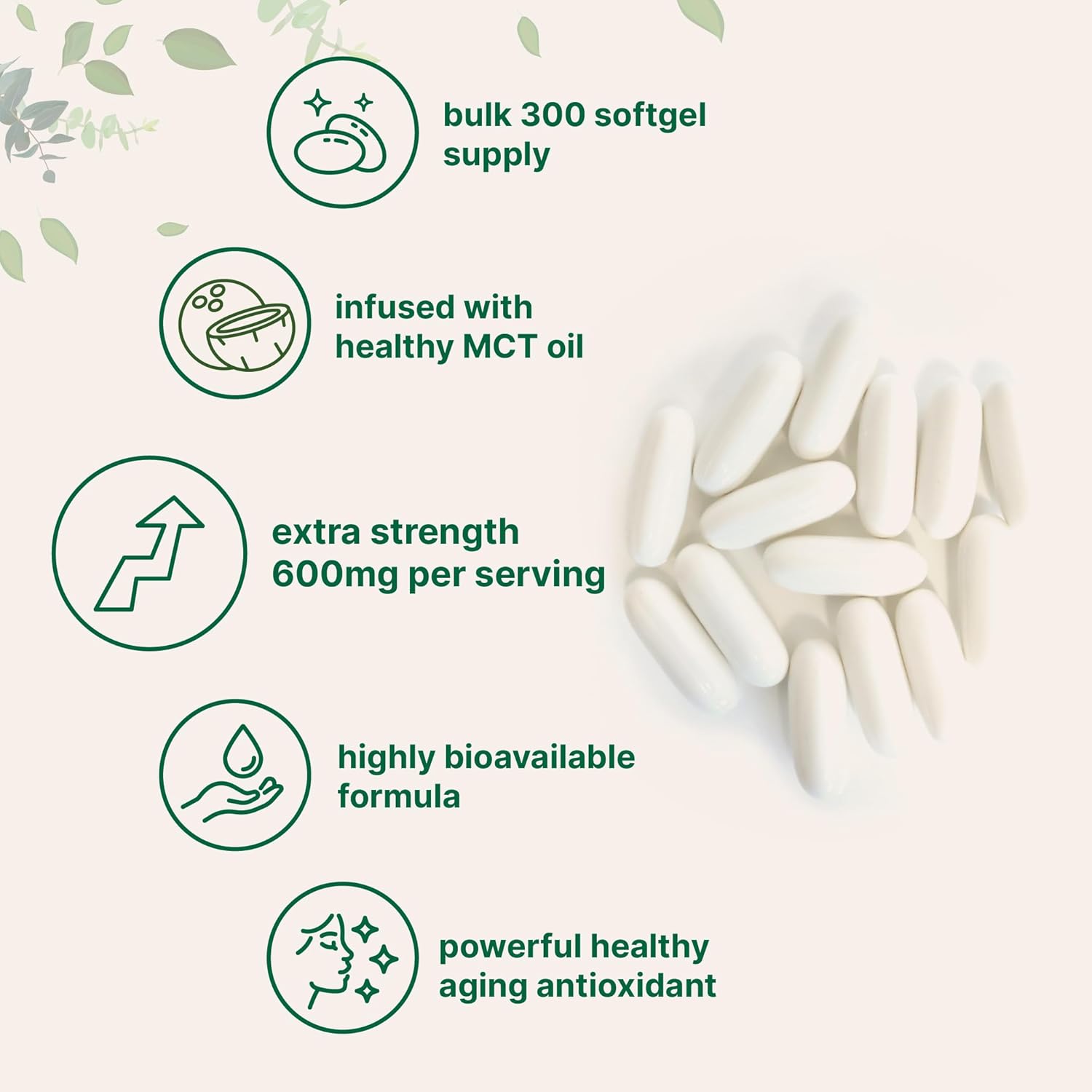 Each pouch includes 300 softgels, with 3 softgels per serving, providing 600mg of ALA and up to a 3-month supply of daily antioxidant support and replenishment