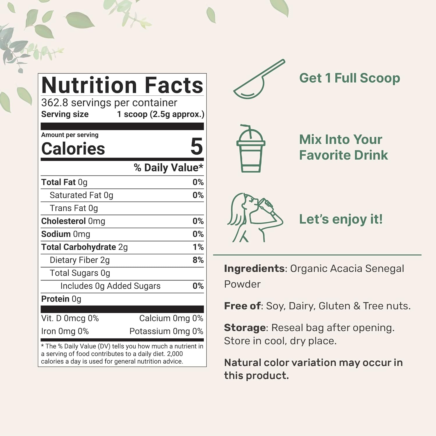 Micro Ingredients High Grade Organic Acacia Senegal Powder. Each Bag Contains Up To A 1 Year Supply Of Pure Bulk Fiber Powder That Provides 2Lbs Of Natural Acacia Senegal