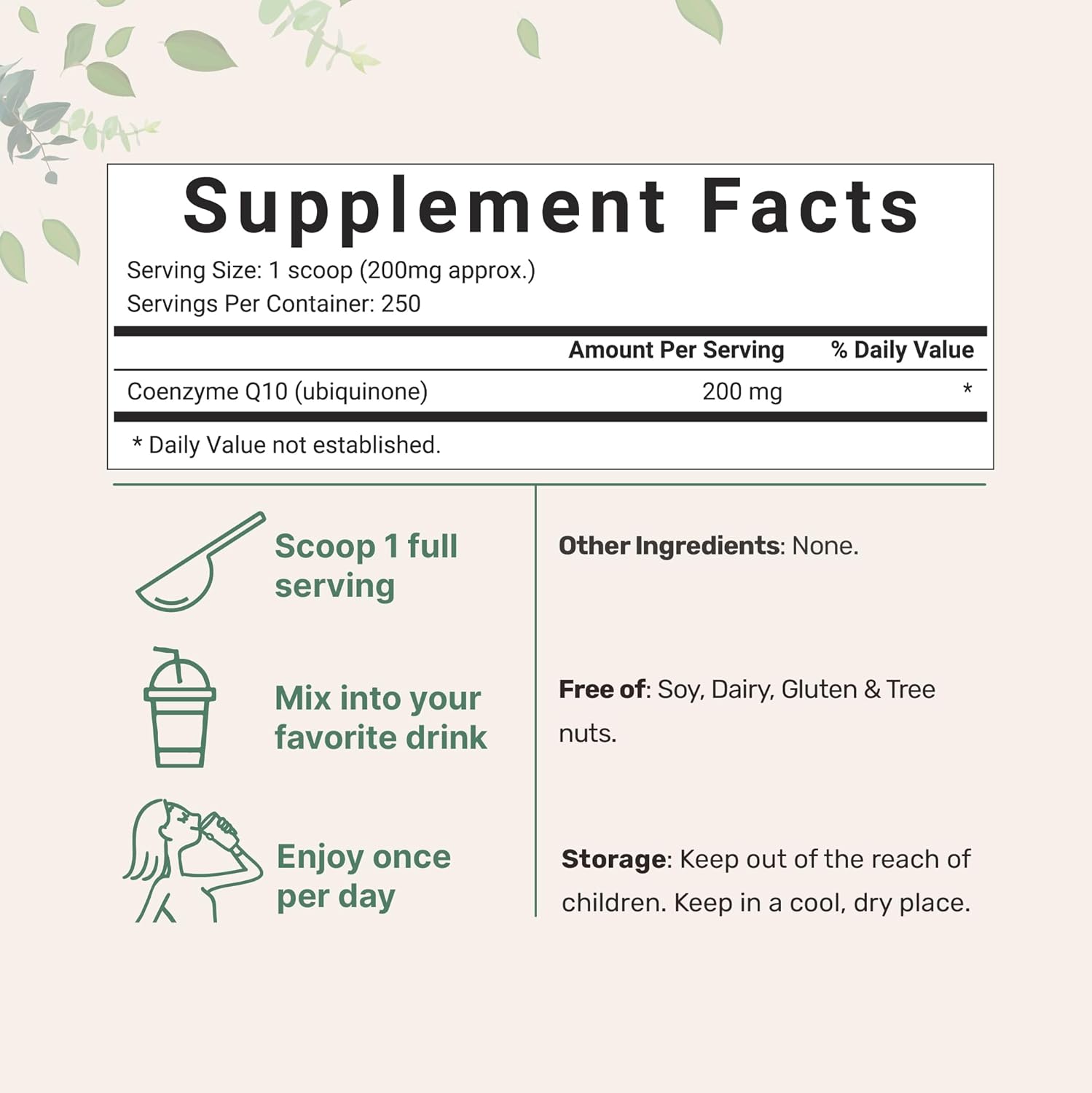 Coenzyme Q10 Powder, 50 Grams (8 Months Supply), Coq10 200Mg Per Serving, Water Soluble Grade For Higher Absorption, Vegan Friendly