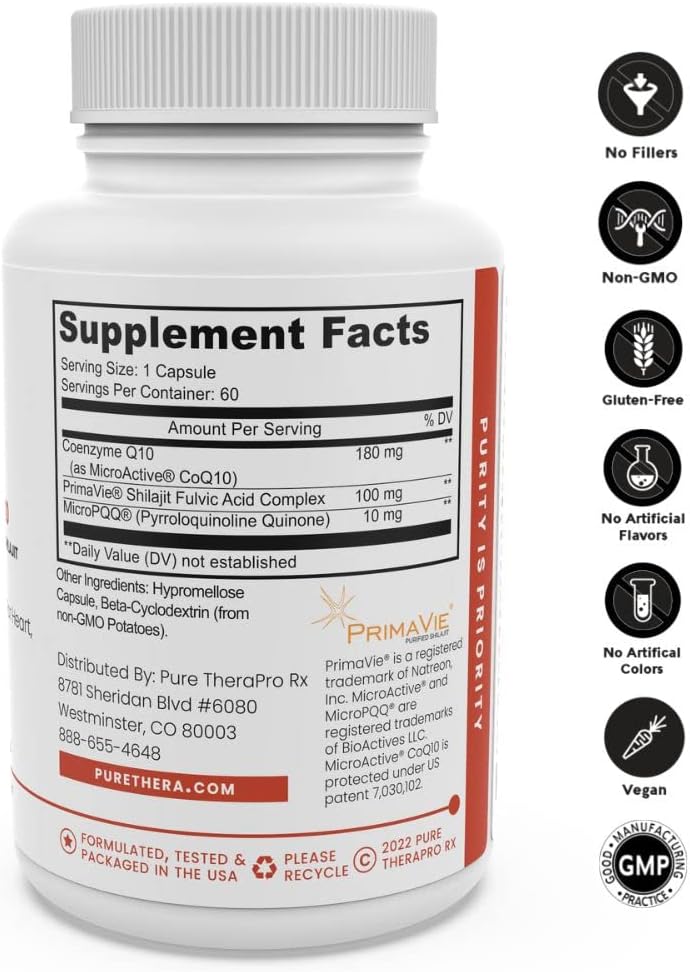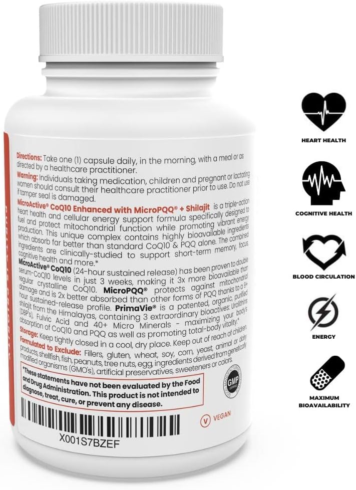 DESCRIPTION : MicroActive CoQ10 Enhanced with MicroPQQ + Shilajit “Sustained Release” 60 Veg Caps | Convenient Once a Day Clinical Dose | 2 Month Supply | Vegan | Pharmaceutical Grade