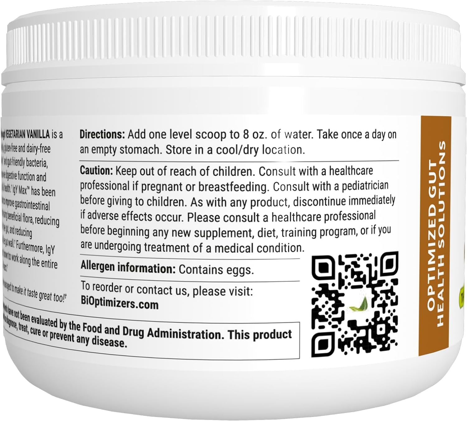 5 >SUITABLE for vegetarians, is gluten-free and dairy-free; it’s got a vanilla flavor; all you have to do is add one scoop to 8 oz. of water and take it once a day on an empty stomach vanilla flavor