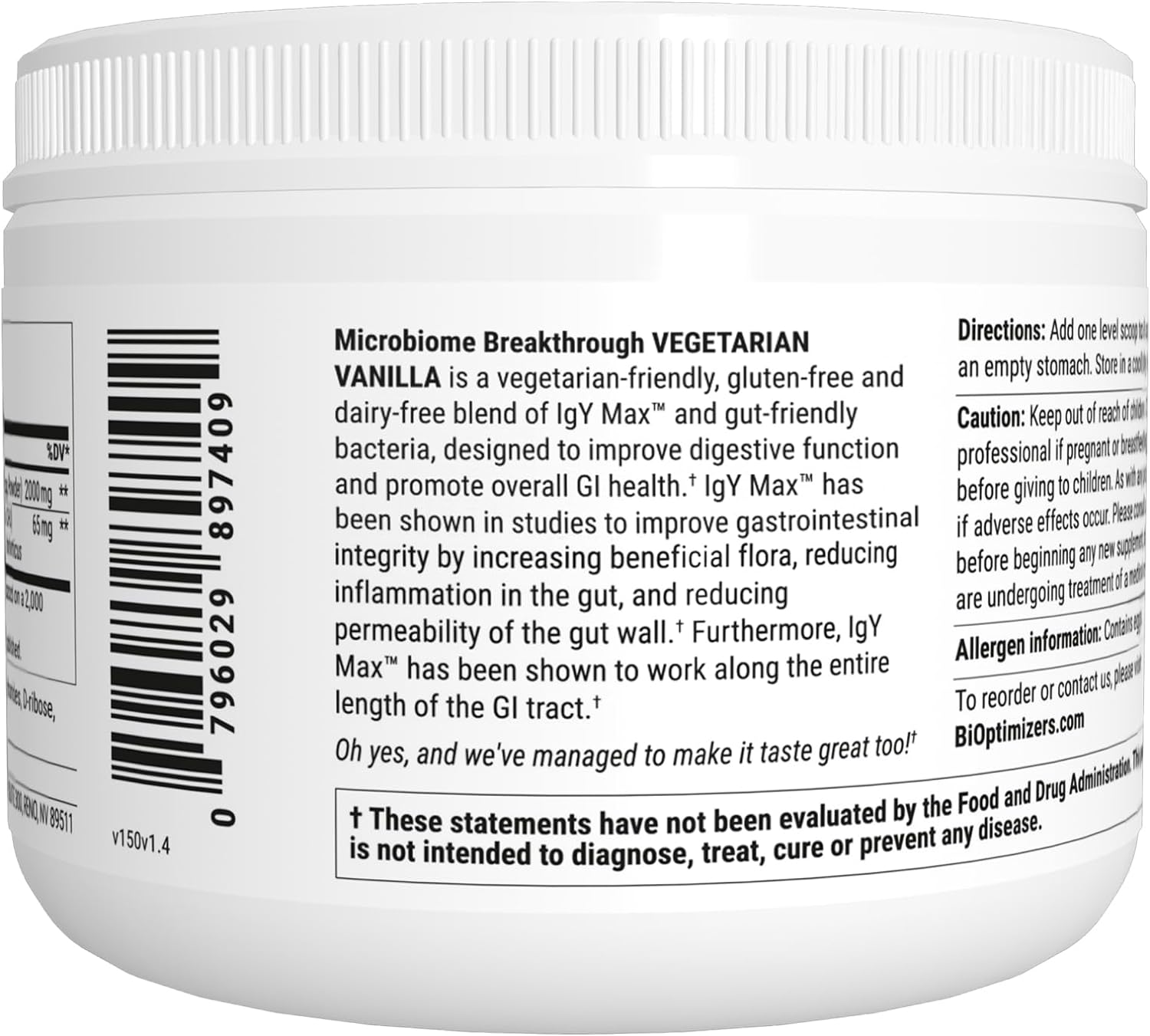 DESCRIPTION : Microbiome Breakthrough Repair Powder - Vegetarian Vanilla - Contains Probiotics for Men and Women - Gas & Bloating Relief - GI Revive - Improves Gut Health - 30 Servings - 150g