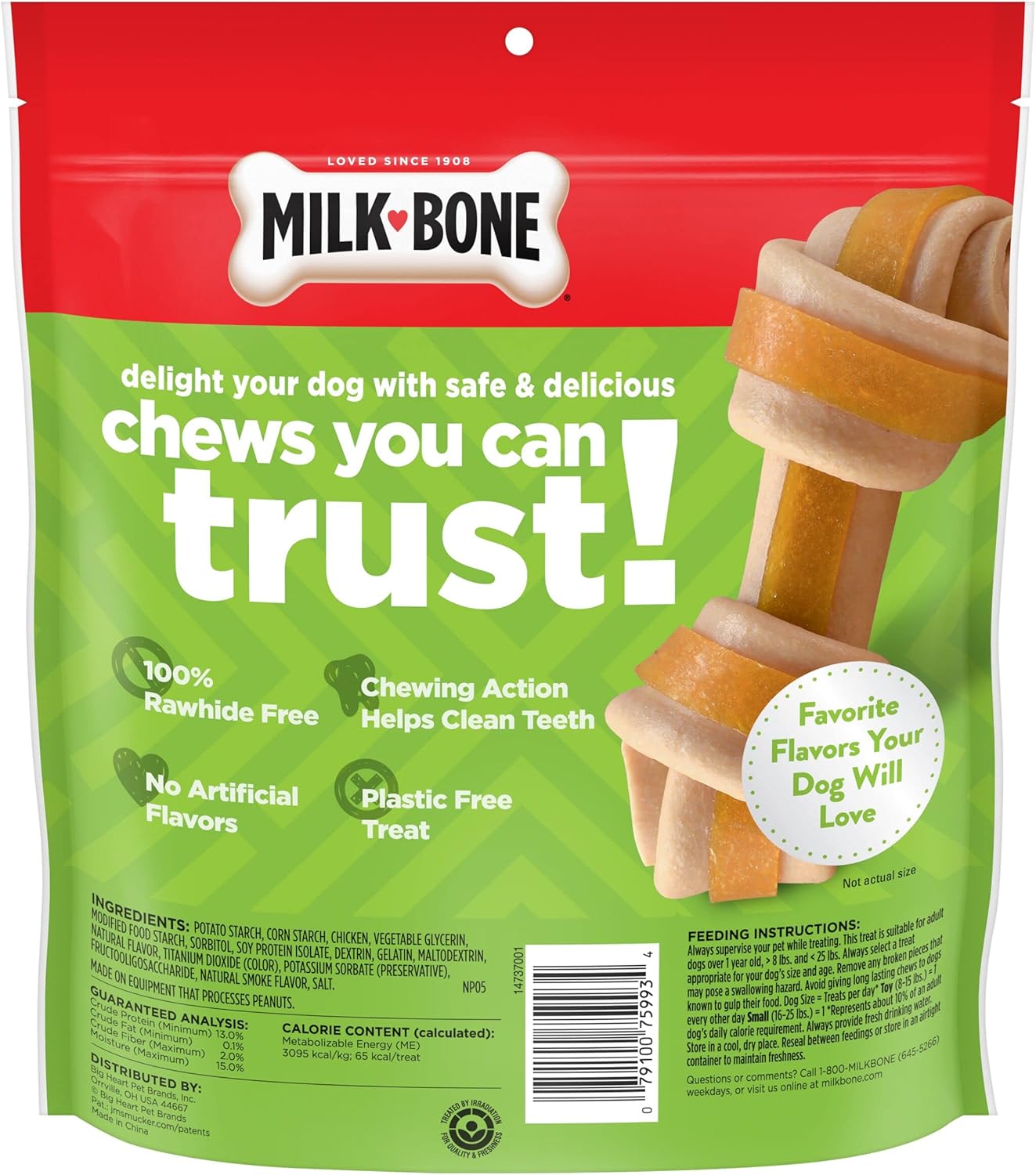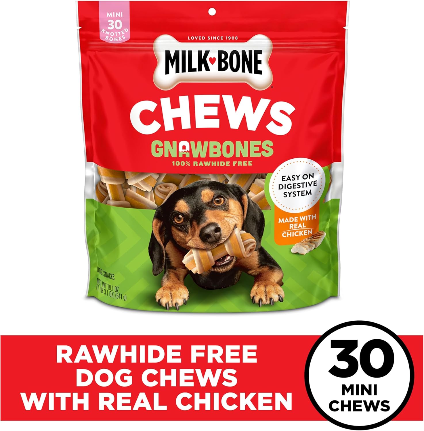 Milk-Bone Chews Gnawbones Rawhide Free Dog Treats, Chicken, 30 Long Lasting Mini Knotted Bones
