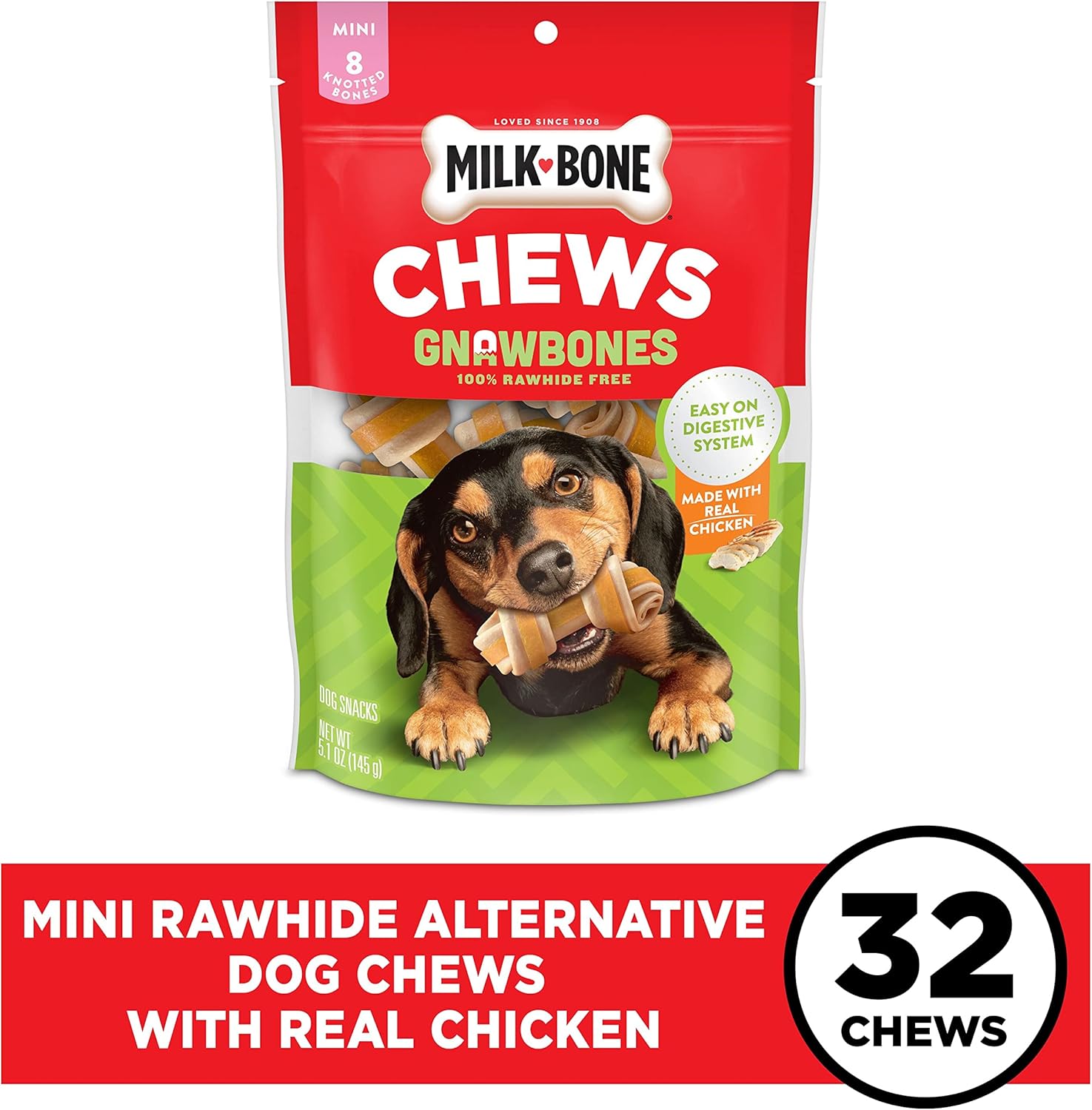 Milk-Bone Chews Gnawbones Rawhide Free Dog Treats, Chicken, 8 Long Lasting Mini Knotted Bones (Pack Of 4)