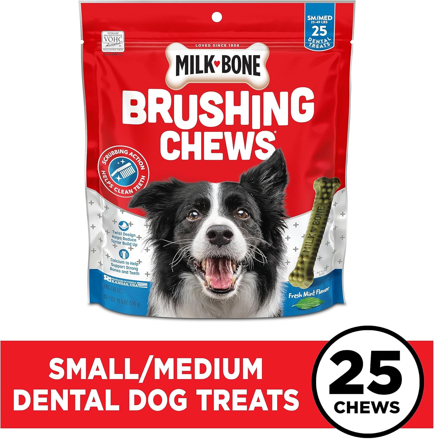 Milk-Bone Fresh Breath Brushing Chews, 25 Small/Medium Daily Dental Dog Treats Scrubbing Action Helps Clean Teeth