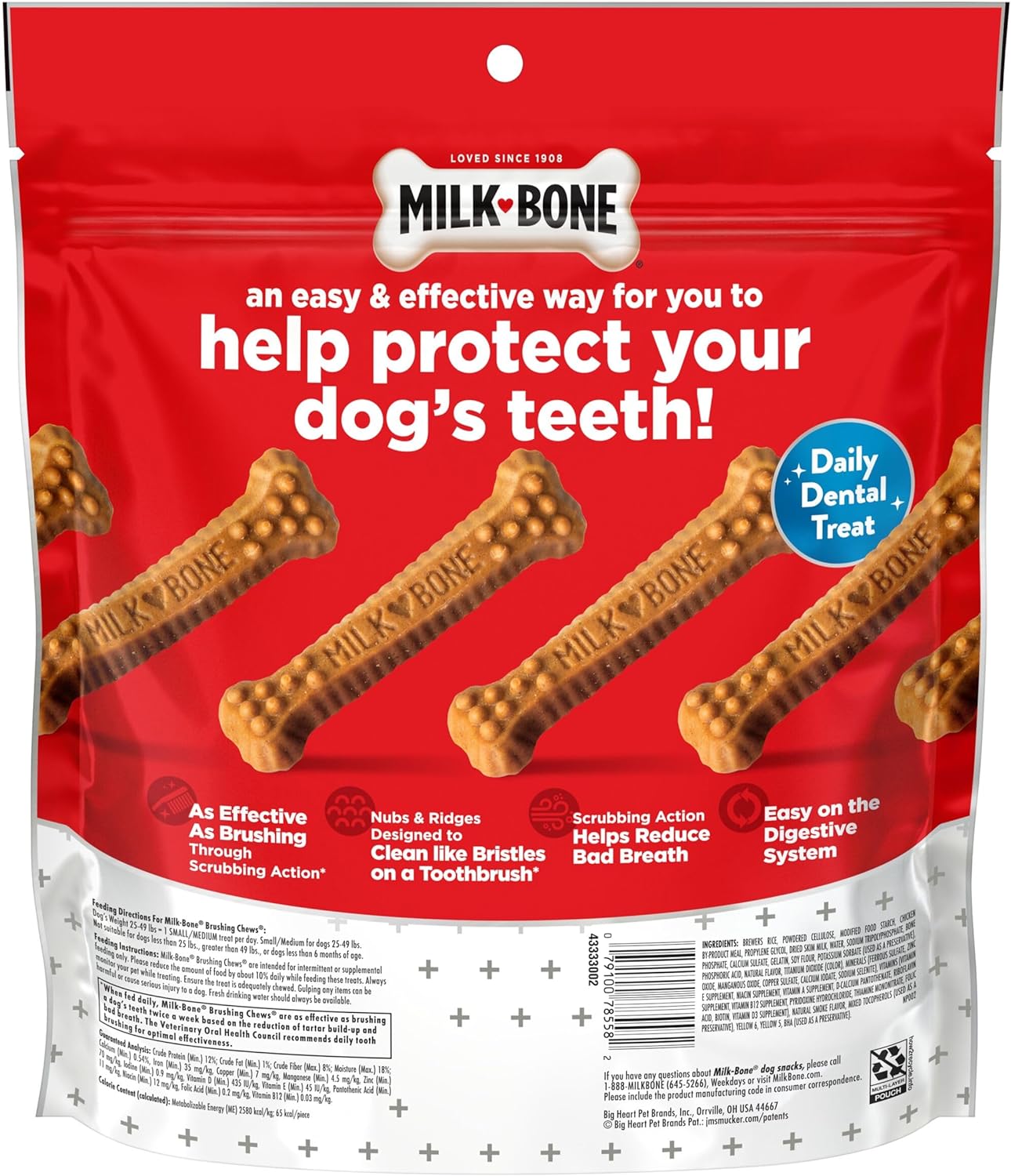 Milk-Bone Original Brushing Chews, 25 Small/Medium Daily Dental Dog Treats Scrubbing Action Helps Clean Teeth
