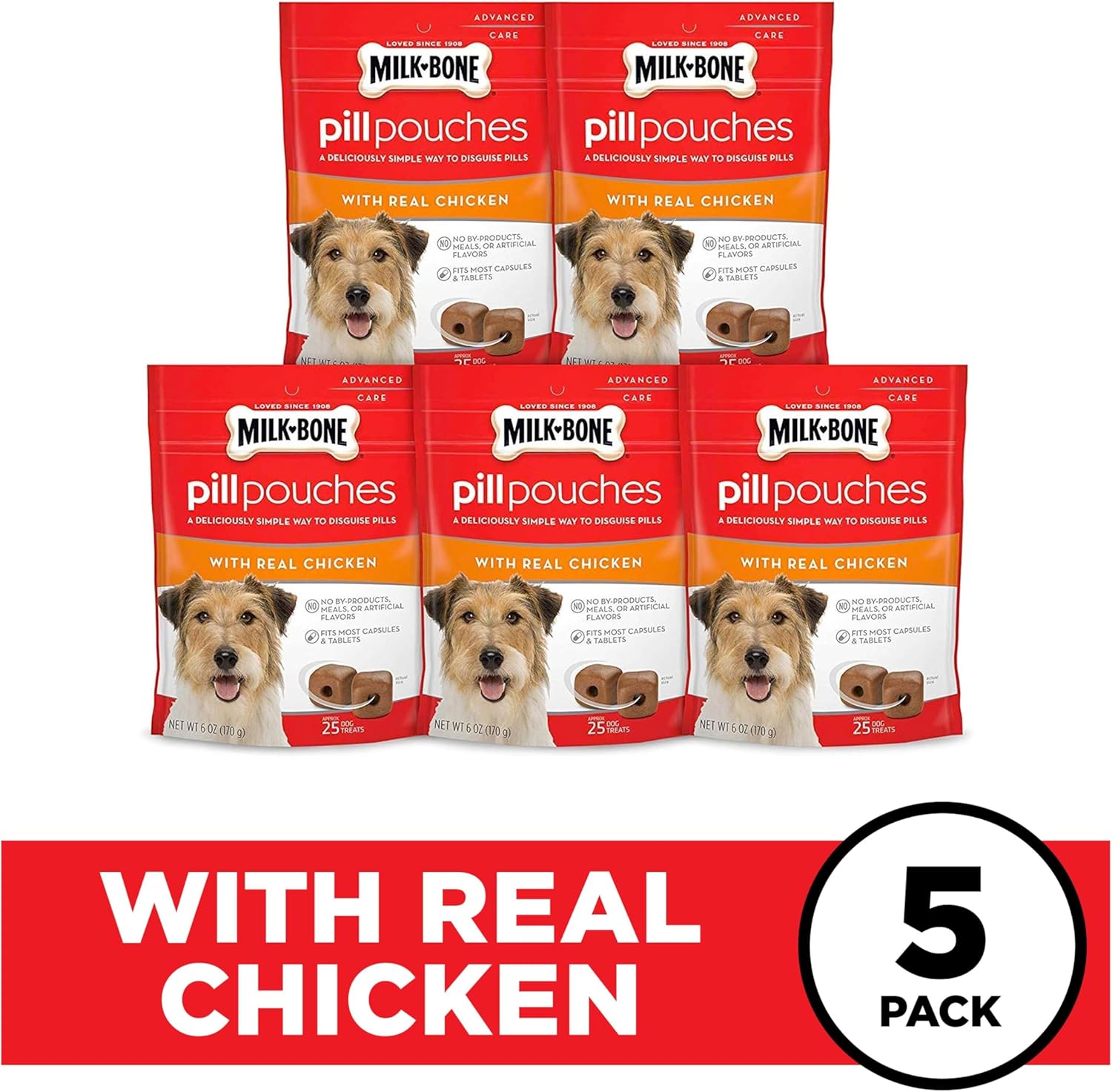 Milk-Bone Pill Pouches Dog Treats, Real Chicken Flavor, 6 Ounce (Pack Of 5)