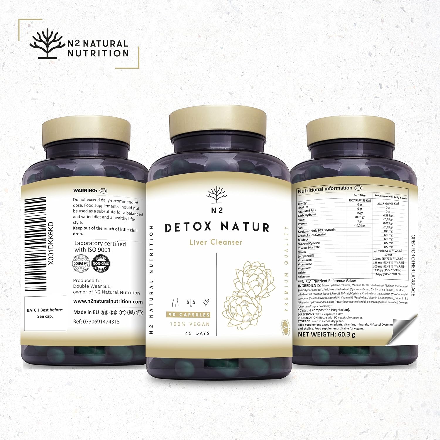 Milk Thistle Detox Complex (38:1) 6840Mg With Artichoke, Choline, Nac, And More. Liver Cleanse Detox And Repair, With, Vitamin B, Selenium And Burdock. 90 Capsules. Vegan. Ce. N2 Natural Nutrition
