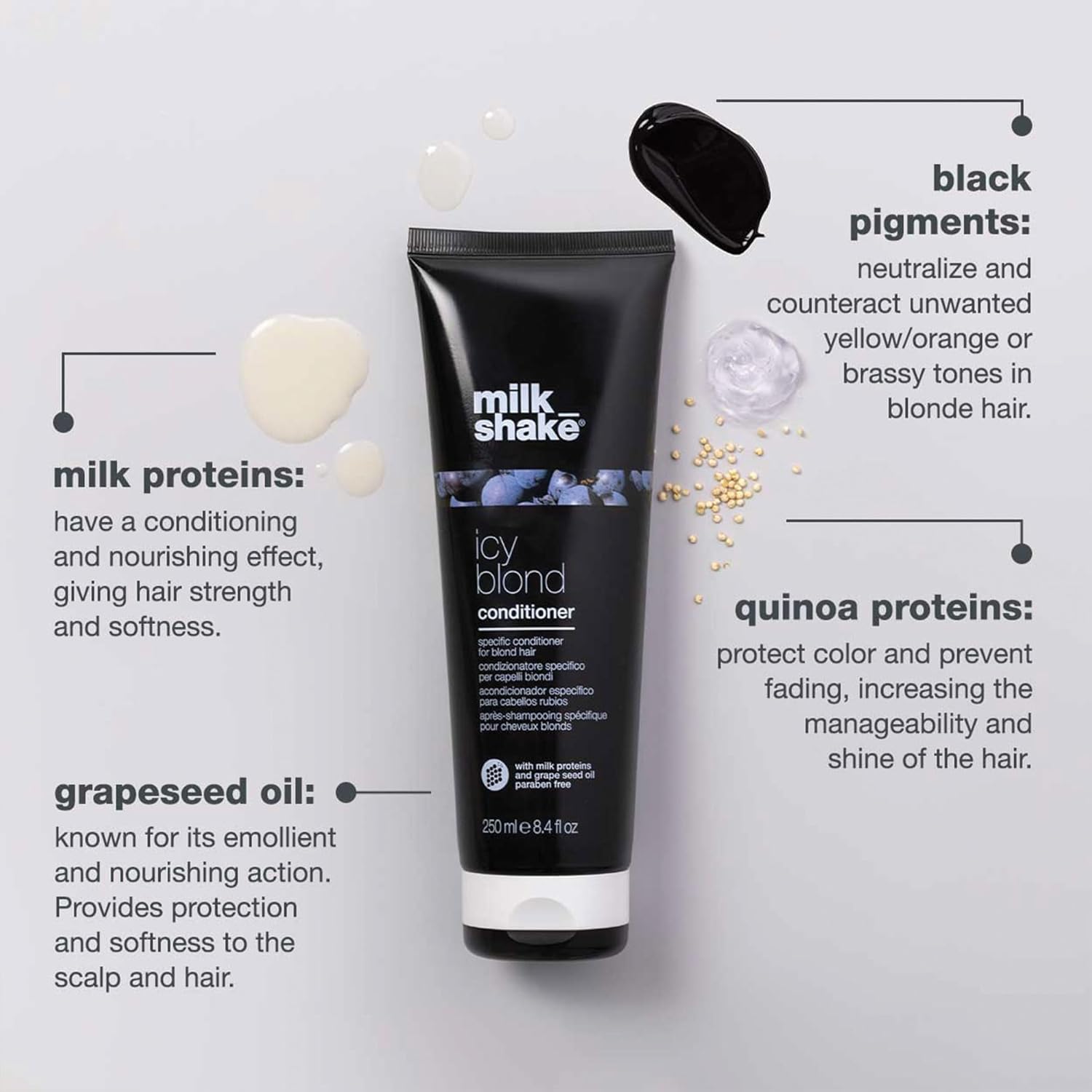 milk_shake Icy Blond Conditioner - Black Pigment Silver Conditioner for Very Light Blond and Platinum Hair