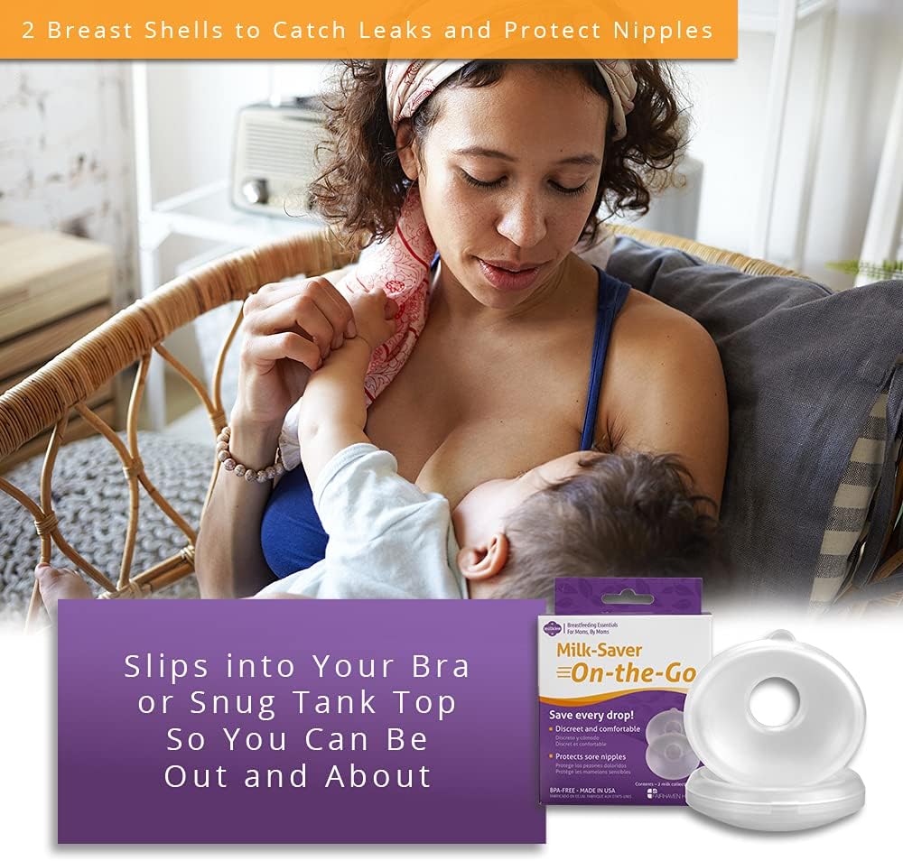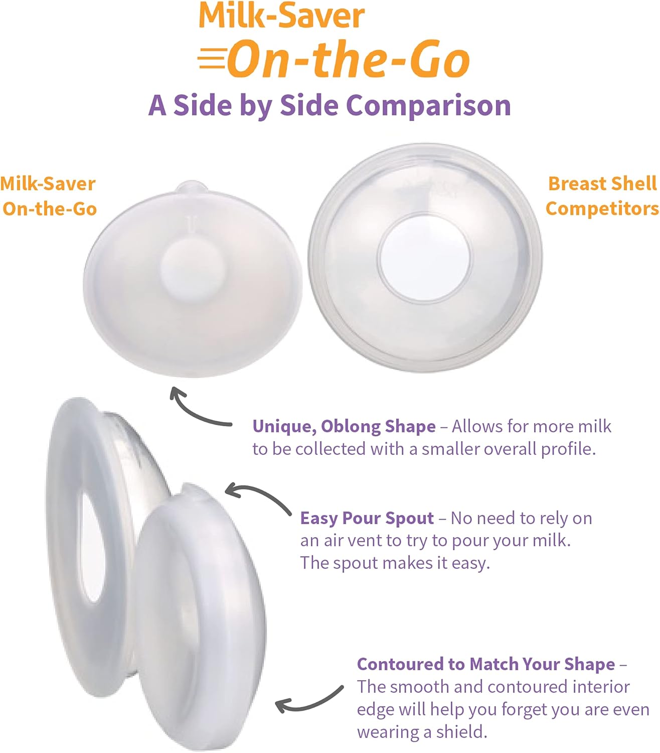 Milkies Milk-Saver On-The-Go, Breast Milk Collecting Shells And Nipple Shield, Discreet And Silicone-Free Catcher For Breastmilk, Collector Cups For Nursing & Breastfeeding, Holds More Than 1Oz