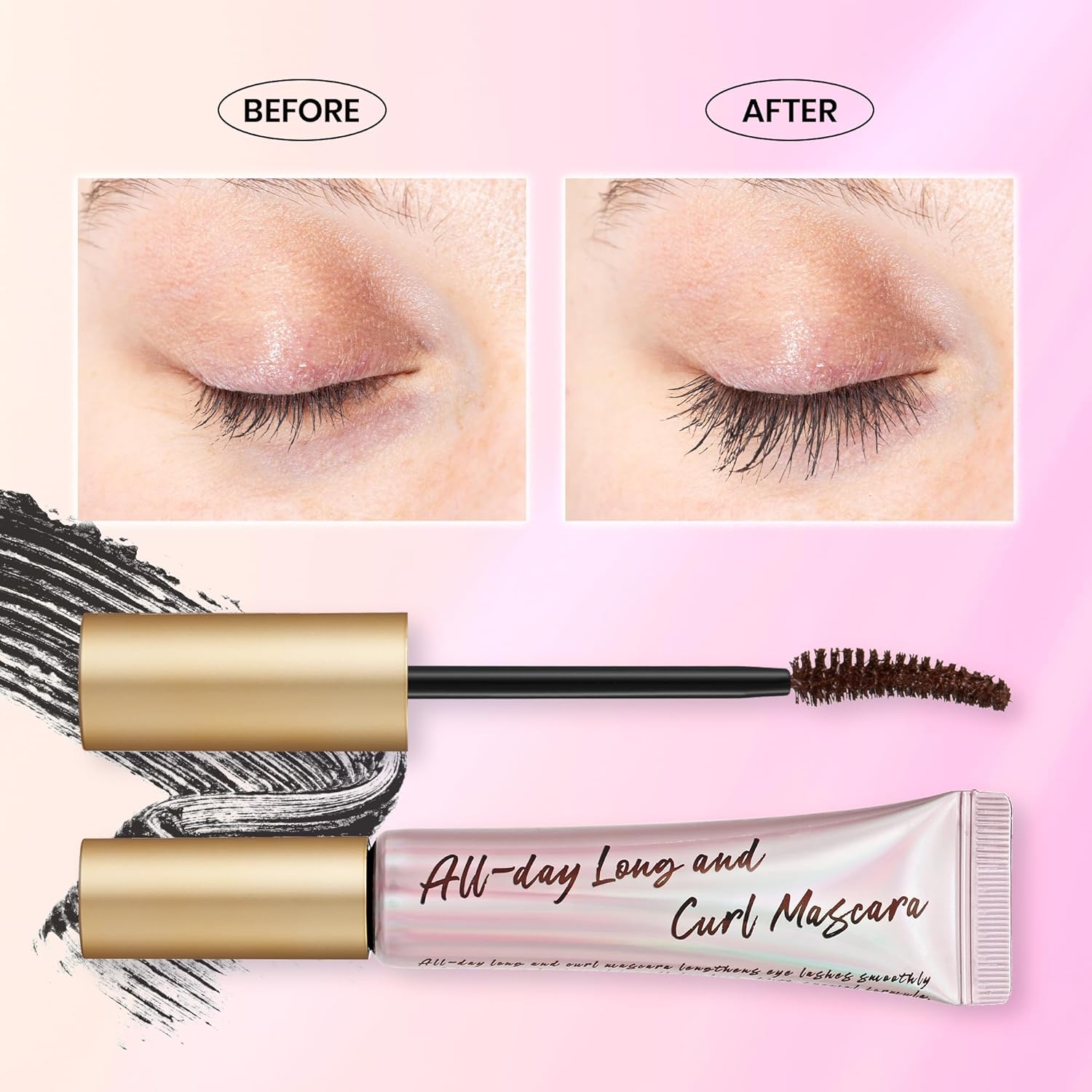 Milktouch All Day Long & Curl Mascara - Lasting Lash Curling Mascara For Straight Lashes | Eye Makeup Mascara Volume And Length | Curl-Enhancing Smudge Proof Mascara | Lash Lift Mascara 0.35 Oz Brown