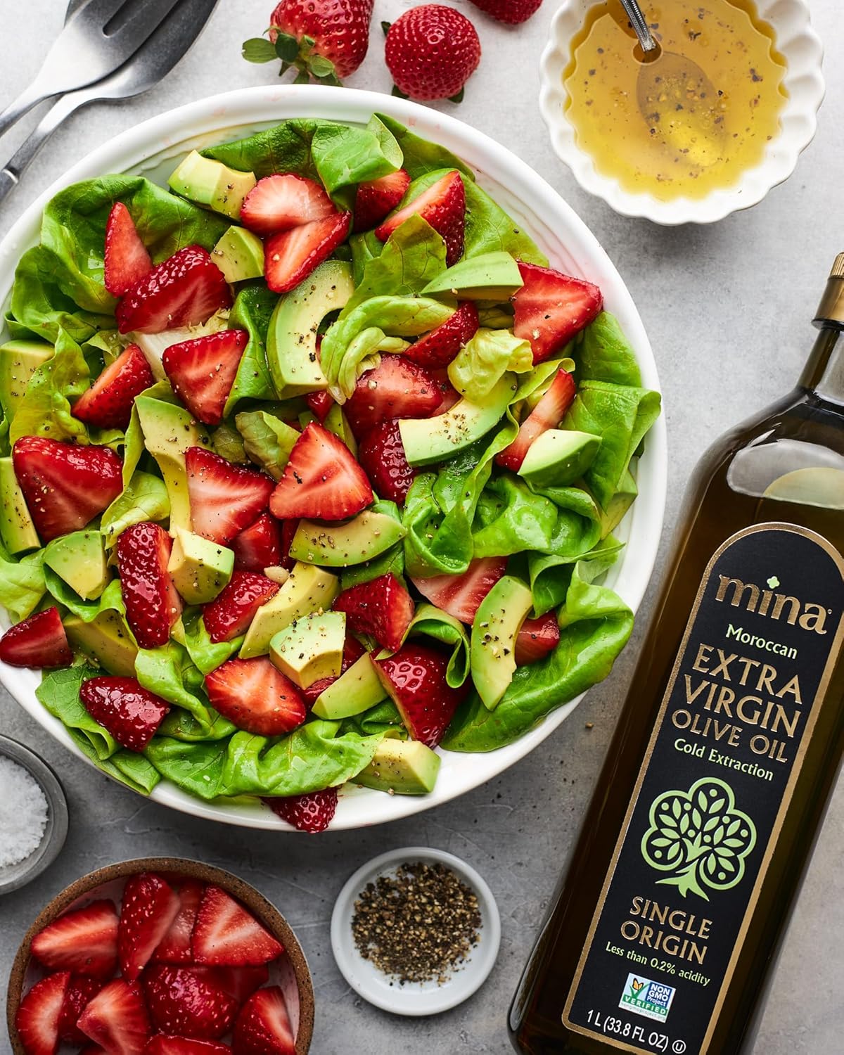 About this item LIGHT, SMOOTH FRESH FLAVOR: Mina Single Source Extra Virgin Olive Oil is deliciously light without overpowering, making it a versatile pantry staple for any modern kitchen. Drizzle, bread dip, grill, bake, fry, sauté, mix, marinate, make dressings, pasta and more. Perfect Cooking Oil for all foods. NATURALLY HEALTHY OLIVE OIL: Rich in heart healthy monounsaturated fats, antioxidants, and polyphenols. Non-GMO Project Verified, Kosher, Trans Fat free. HIGH POLYPHENOLS AND LOW ACIDITY: Moroccan extra virgin olive oil has notably higher levels of nutritious polyphenols than oils from other regions. Mina is polyphenol rich olive oil and has less than 0.2% acidity, which is 4x lower than the legal requirement for extra virgin olive oils. SINGLE ORIGIN OLIVE OIL: Mina Extra Virgin Olive Oil from Morocco is sourced from a single estate family farm and traceable to the tree. Unblended olive oil indicates a commitment to excellence, consistency and traceability. COLD EXTRACTION: This modern process ensures the finest quality in extra virgin olive oils. The olives aren’t pressed, but rather extracted to uphold the integrity, flavor, freshness, and nutrition of the fruit. › See more product details,LIGHT, SMOOTH FRESH FLAVOR: Mina Single Source Extra Virgin Olive Oil is deliciously light without overpowering, making it a versatile pantry staple for any modern kitchen. Drizzle, bread dip, grill, bake, fry, sauté, mix, marinate, make dressings, pasta and more. Perfect Cooking Oil for all foods,NATURALLY HEALTHY OLIVE OIL: Rich in heart healthy monounsaturated fats, antioxidants, and polyphenols. Non-GMO Project Verified, Kosher, Trans Fat free,HIGH POLYPHENOLS AND LOW ACIDITY: Moroccan extra virgin olive oil has notably higher levels of nutritious polyphenols than oils from other regions. Mina is polyphenol rich olive oil and has less than 0.2% acidity, which is 4x lower than the legal requirement for extra virgin olive oils,SINGLE ORIGIN OLIVE OIL: Mina Extra Virgin Olive Oil from Morocco is sourced from a single estate family farm and traceable to the tree. Unblended olive oil indicates a commitment to excellence, consistency and traceability,COLD EXTRACTION: This modern process ensures the finest quality in extra virgin olive oils. The olives aren’t pressed, but rather extracted to uphold the integrity, flavor, freshness, and nutrition of the fruit