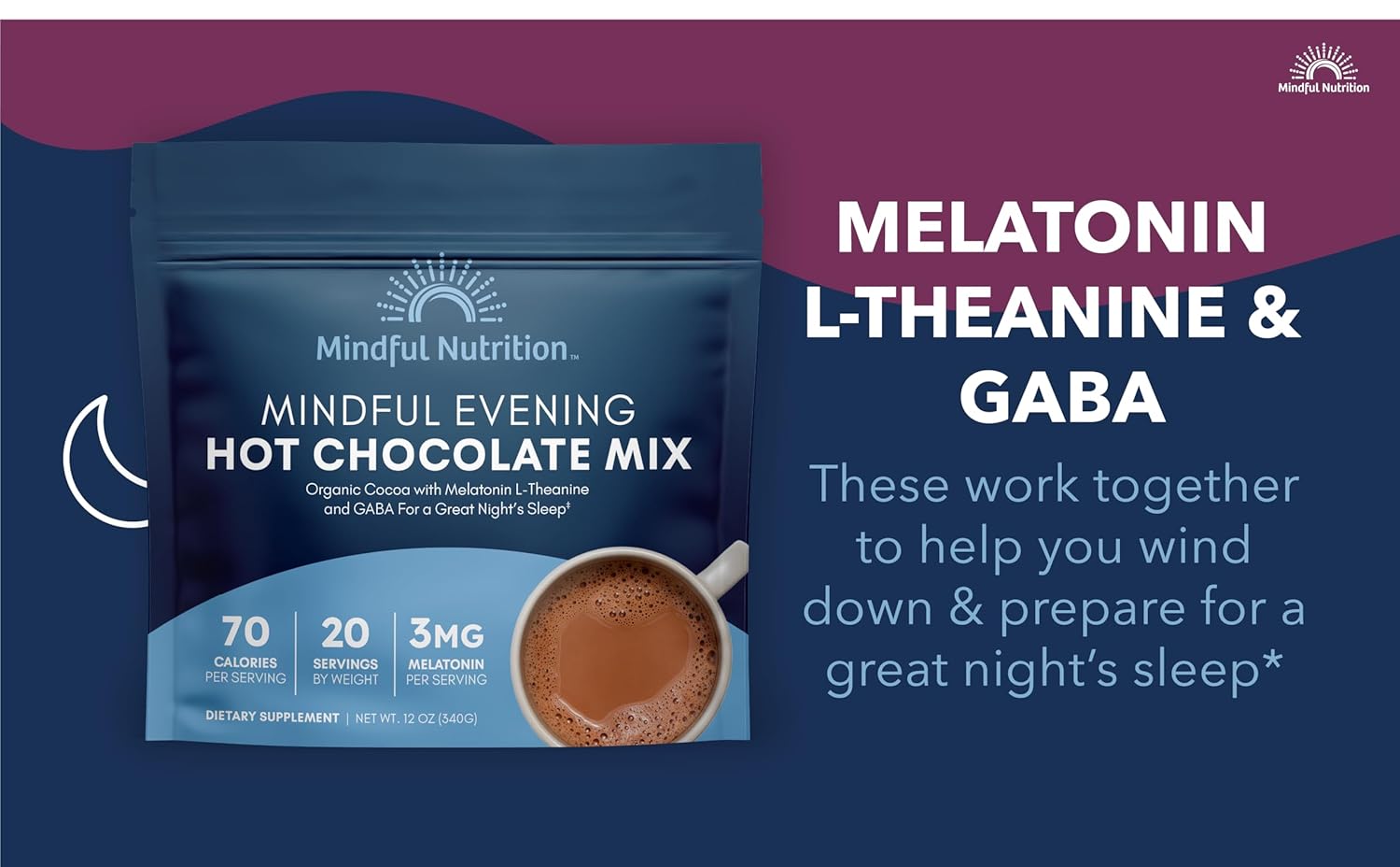 Mindful Evening Peppermint Cocoa Mix Natural Sleep Aid, Melatonin 3Mg, L-Theanine, Gaba Supplements, Natural Calm Sleep Support Stress Relief Calm Sleepy Cocoa Nighttime Peppermint Hot Chocolate