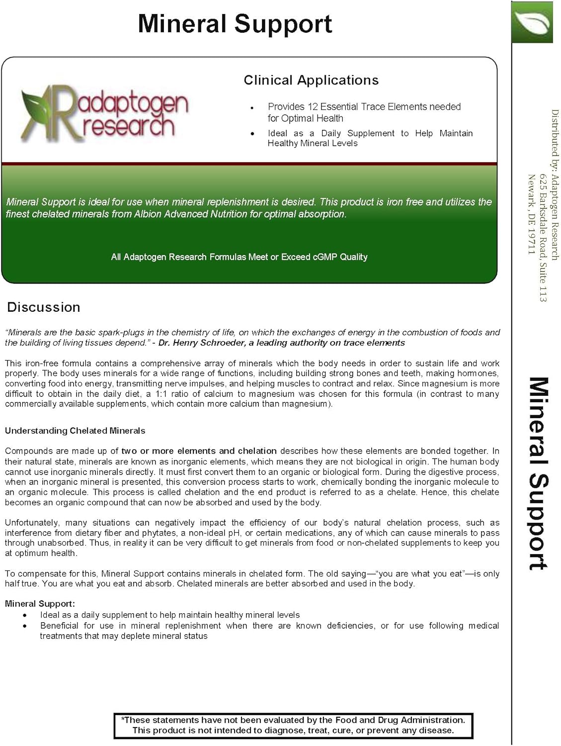 Mineral Support is ideal as a daily supplement, or for use in mineral replenishment during medical therapies. This product is iron-free and utilizes the finest chelated minerals from Albion Advanced Nutrition for optimal absorption