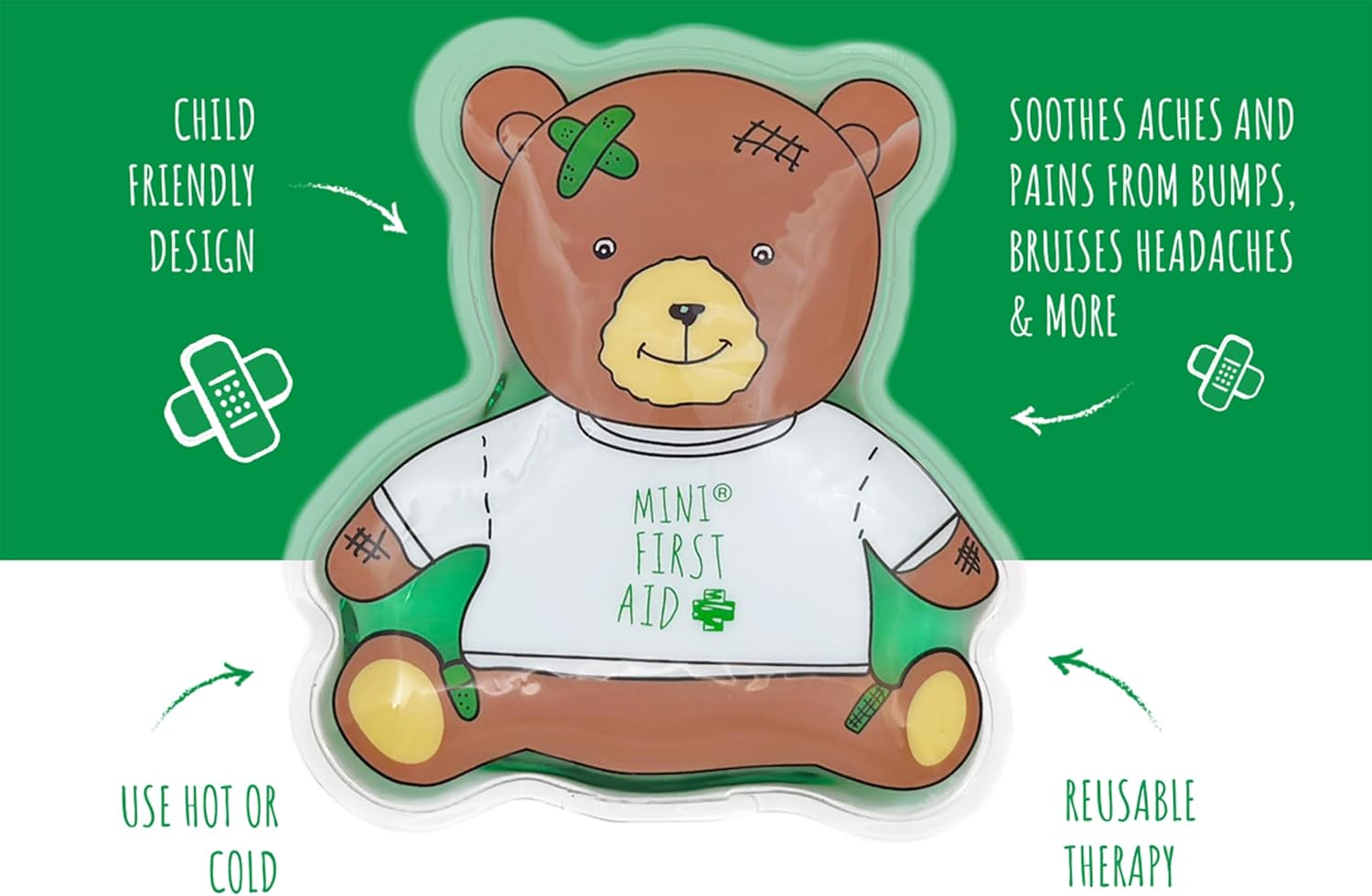 Mini First Aid Hot/Cold Reusable Gel Pack – For Bumps, Bruises, & Pain Relief – Flexible Compress For Heat Or Cool Therapy – Cute Teddy Bear Design – Ideal For Kids