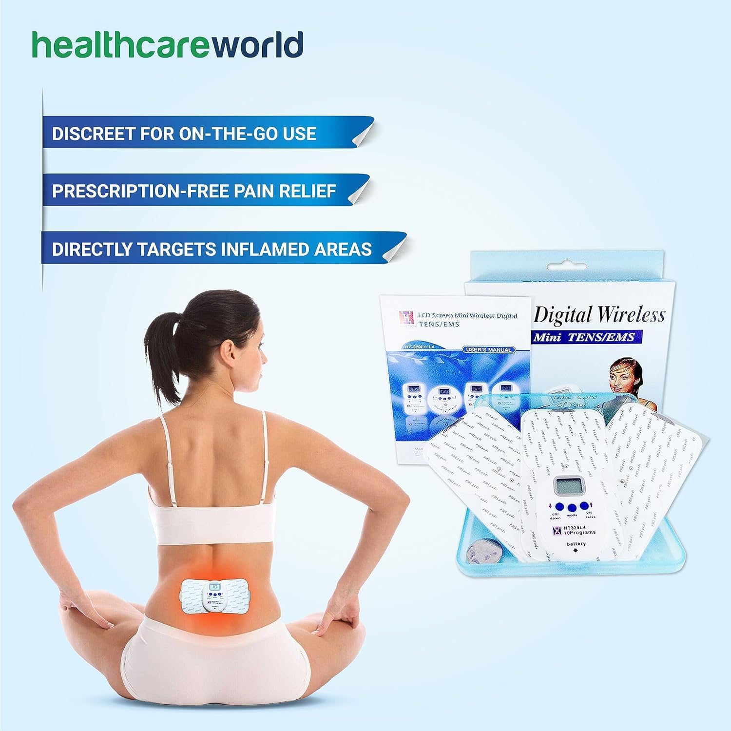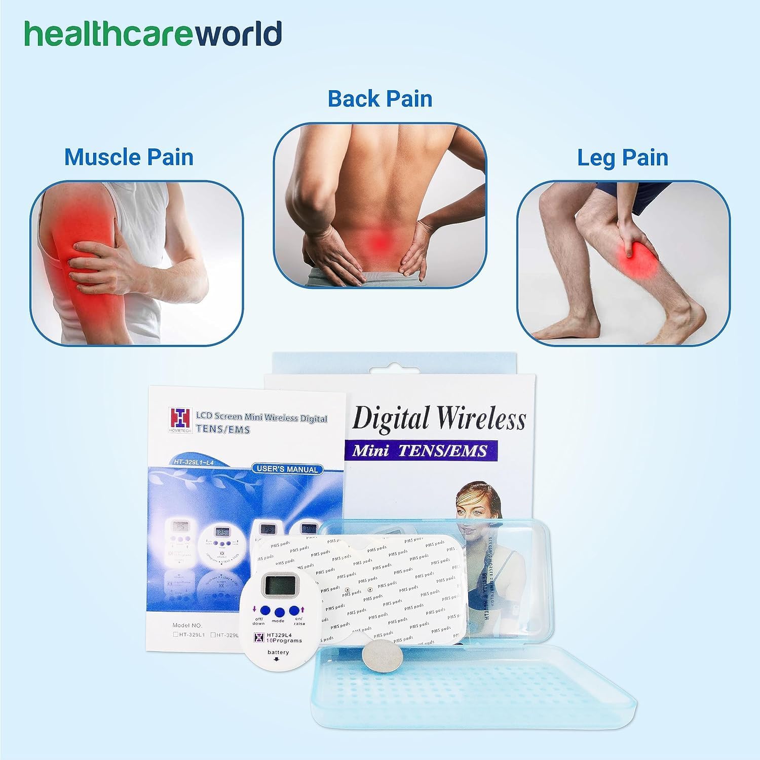 Mini Wireless Tens Machine & Leads & 4 Tens Pads & Mini Stud Pad