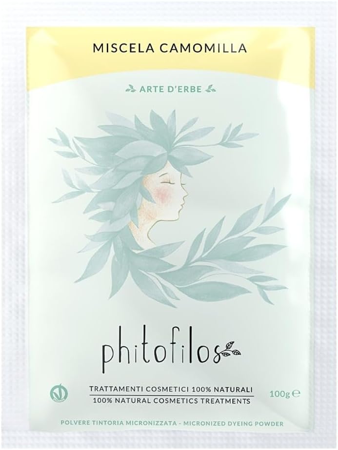 Product Description Specially designed with Biondi, colour: golden blonde. Make dye golden blonde with very high coverage on white (45 – 60 minutes); excellent results after application on medium blonde (including in the presence of white hair). Light results with medium castano boots, chiari with light effects (45 – 90 minutes). Instructions on how to use the A Bowl, mix and a spoon, metal, preferably not the required amount of dust of herbs with hot water, up to a batter spreader not too tight. Add (Optional) vinegar, lemon juice or yoghurt White to the result of a Semo Lino of the consistency of these that not Coli. Can be used in damp hair slightly moistened Detersi and straight out and a time between 45 and 90 minutes, depending on the result you want and the funds. Check with punctuality the over a period of a damp. Please note: For 100 g powder, the recommended amount of water is about 400/fl oz (480 ml). * The amount of water should always be tested by time and change depending on the ambient temperature, the lot of product to the length of time between preparation and use, and to supplement in beer batter (e.g. yoghurt, gel, lemon, vinegar, etc.) Directions Mix the required amount of powder with lukewarm water until a pastel is not too thick. Add vinegar, lemon juice or white yogurt until a consistency is created that does not drip. Apply to lightly cleaned, freshly damp hair. Wrap with food paper or aluminium and leave for 45 to 120 minutes, depending on the desired result and starting surface. After the allotted time has elapsed, rinse and proceed to normal drying,Chamomile blend – Art of herbs Power coloring golden blond with excellent coverage on whites (45-90 minutes); excellent results after application on blond grounds even in the presence of white hair. Light results on light brown backgrounds with excellent light effects (45-120 minutes),HOW TO USE: Mix the necessary amount of powder with hot water, until you get a batter not too thick. Add (optional) vinegar, lemon juice or white yogurt until the result of a semolina of the consistency such that it does not coil,Apply to slightly cleansed and just damp hair. Wrap with food film or foil and leave on between 45 and 120 minutes, depending on the desired result and the starting bottom. After the scheduled time, rinse and proceed with normal drying,The Arte d'Erbe line consists of 100% herbal powders expertly mixed for the reflection and well-being of the hair. All items are produced and packaged in Italy, are dermatologically tested and subjected to sterilization processes to guarantee safety for the consumer,INGREDIENTS: Cassia Obovata Leaf Powder, Chamomilla Recutita Flower Powder, Rheum Officinale Root Powder, Lawsonia Inermis Leaf Powder