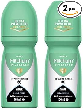 Mitchum Invisible Women 48Hr Protection Roll On Deodorant & Anti-Perspirant, No White Marks, Alcohol Free, Clear Fresh (Pack Of 2)