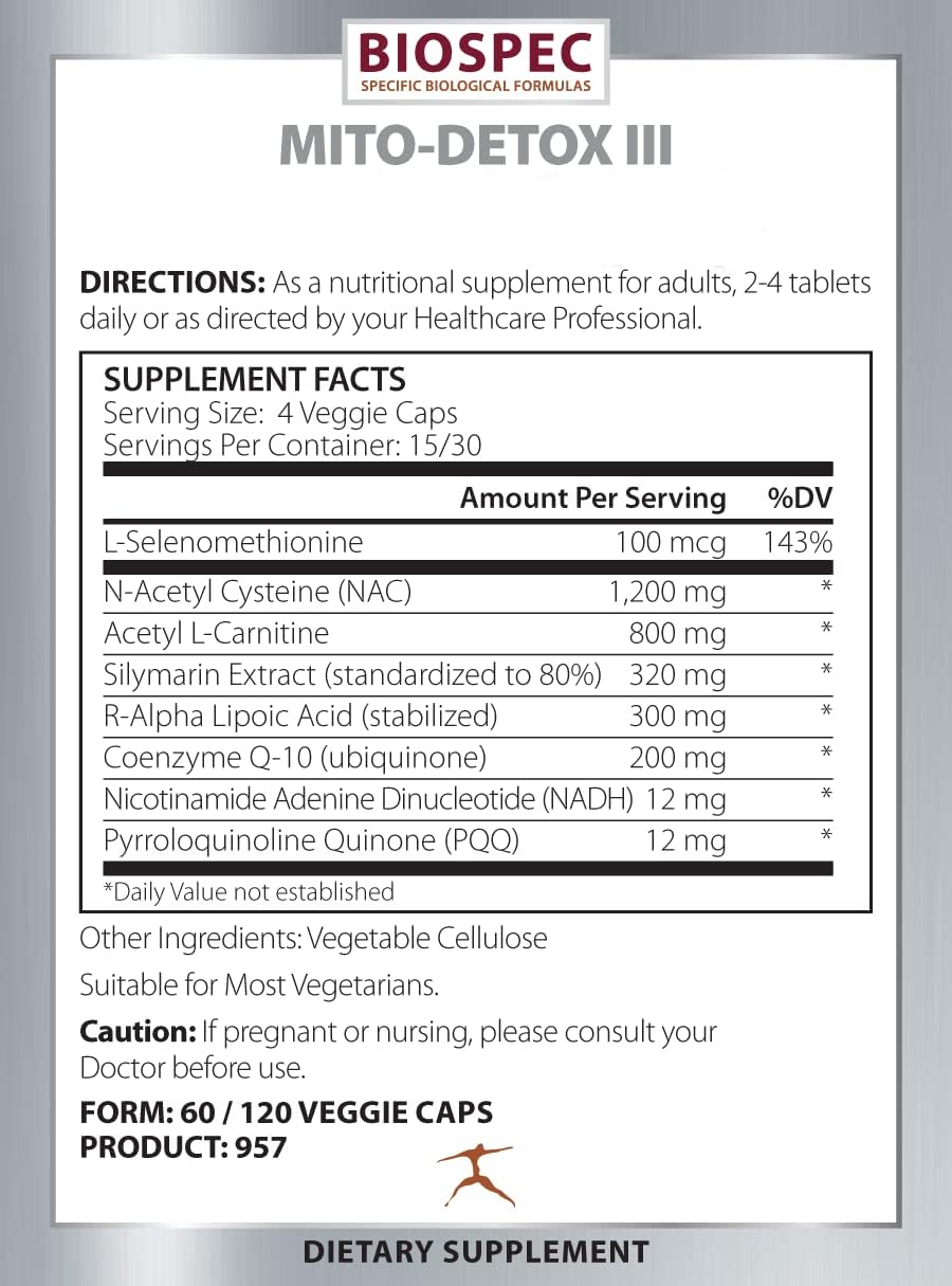 Mito-Detox Iii β N-Acetyl Cysteine (Nac), Acetyl L-Carnitine, Alpha Lipoic Acid (Ala), Co-Q-10