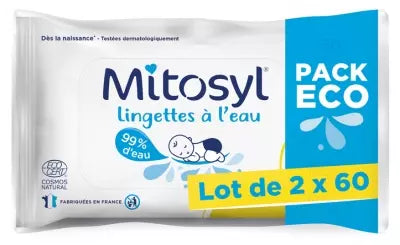 Mitosyl Water Wipes Set Of 2 X 60 Wipes Have Been Specially Developed To Gently Cleanse Baby'S Skin In A Single Step. Suitable For Daily Use, They Are Resistant And Suitable For Sensitive Skin. They Leave Skin Clean, Fresh And Soft To The Touch. These Wipes Are Made From 100% Natural Plant Fibers. They Are Compostable. Dermatologically Tested. Fragrance-Free. 99.7% Of The Total Is Of Natural Origin. Cosmos Natural Certified By Ecocert Greenlife According To The Cosmos Standard. Made In France