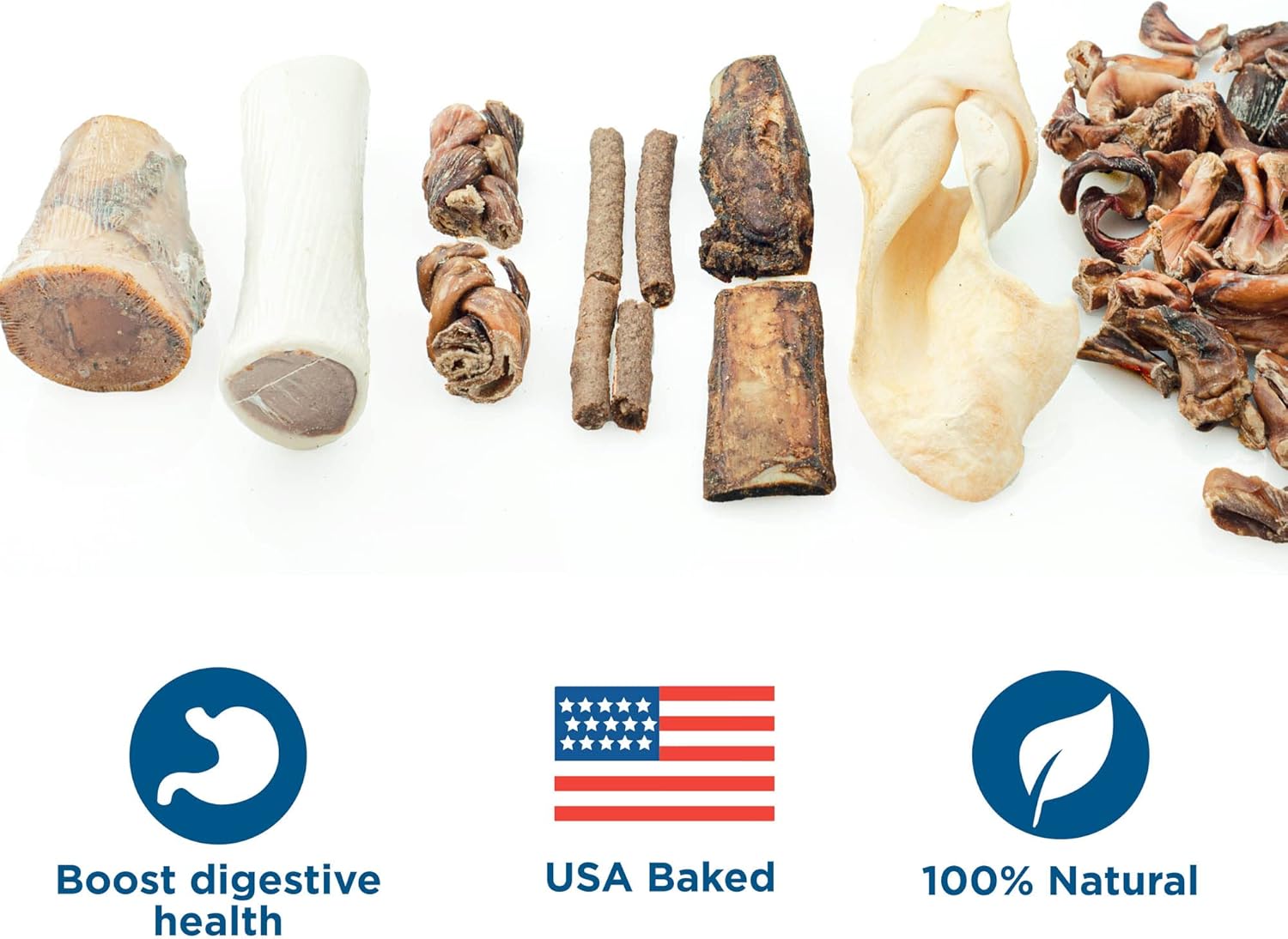 Mixed Morsels Bargain Bag - 1.5 Lb. Assorted Natural Dog Treats - Rawhide-Free Variety - Stuffed Shin Bone, Small Femur, Broken Snap Sticks, Gullet Mix, Cow Ear, Rib Bone