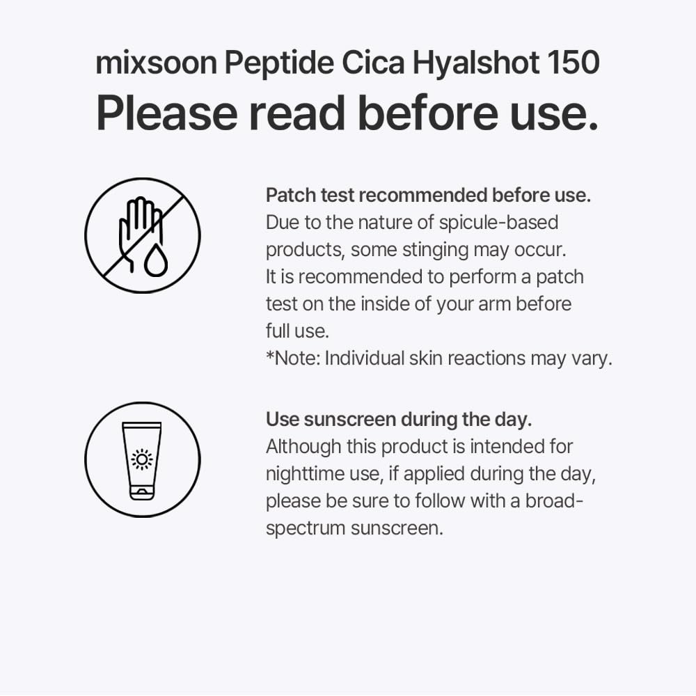 Mixsoon Peptide Cica Hyalshot 150, 1.69 Fl. Oz / 50Ml Centella Asiatica, Hyaluronic Acid For Sensitive Skin Lightweight & Fragrance-Free Korean Glass Skin Care